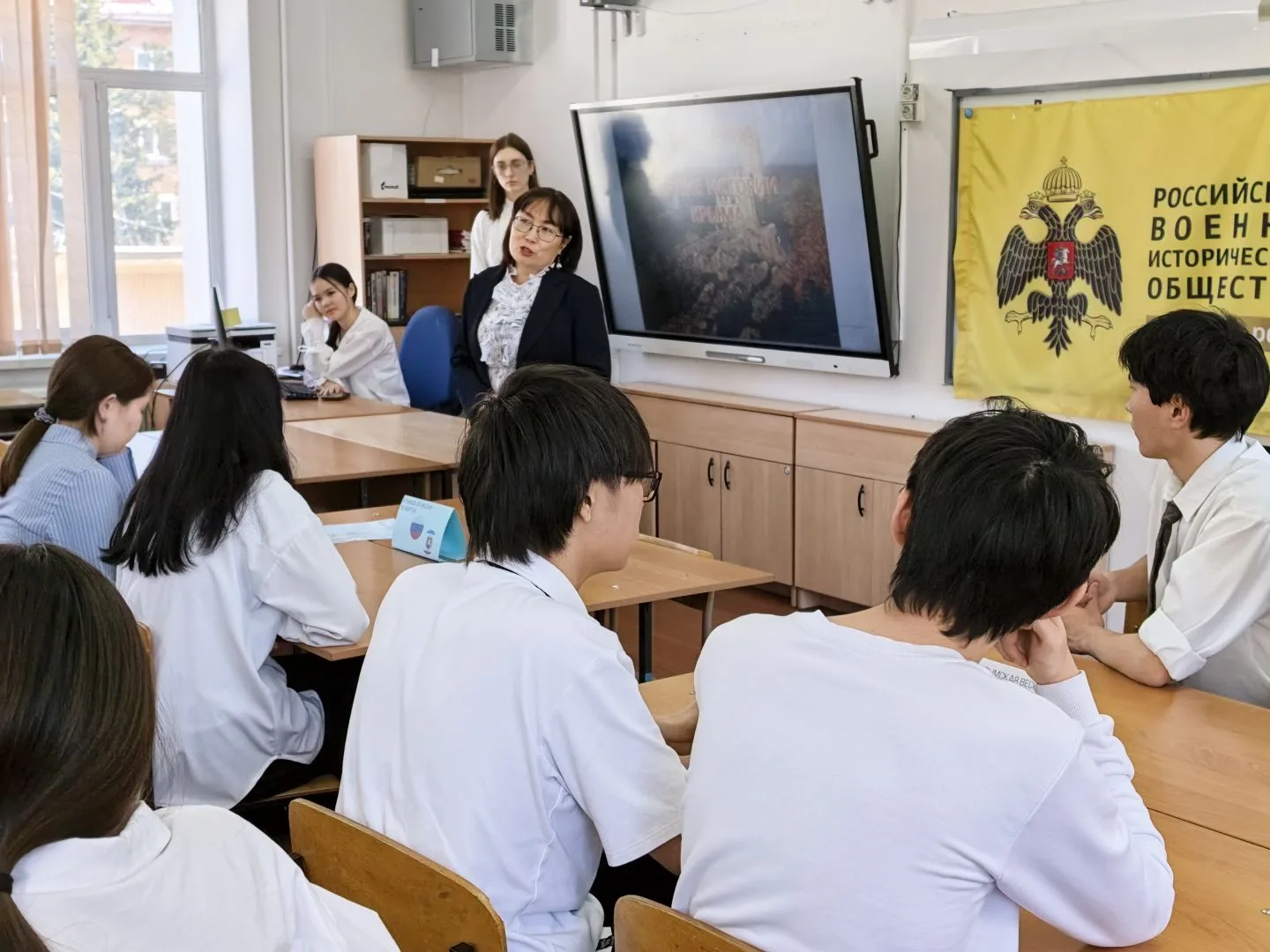Перед началом мероприятия с ответственным словом выступила Тадышева Наталья Олеговна, директор гимназии, член регионального отделения ВРИО в Республике Алтай — она тепло пожелала участникам успехов и подчеркнула важность изучения истории и культуры нашего страны.