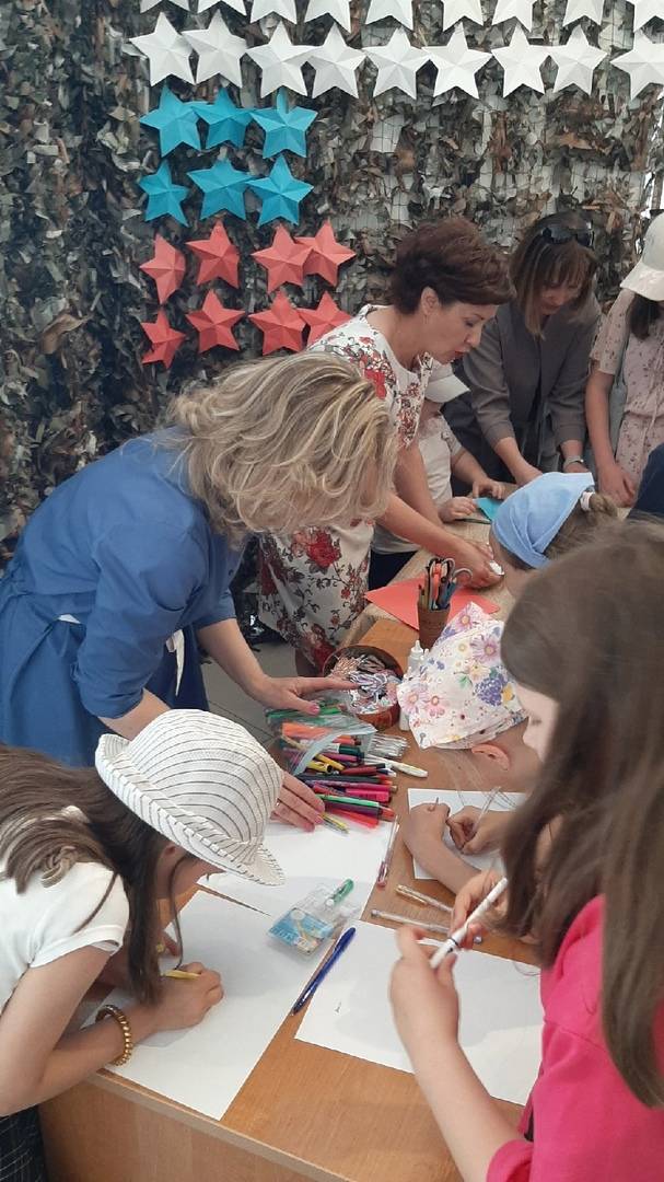 Участники мероприятия посмотрели видеосюжеты о гуманитарных миссиях юхновских казаков и настоятеля храма в честь Казанской иконы Божией Матери о. Алексея в зону СВО, волонтёрской работе. А также приняли участие в мастер-классах, в ходе которых написали письма для наших бойцов и собрали флаг РФ из бумажных звездочек.