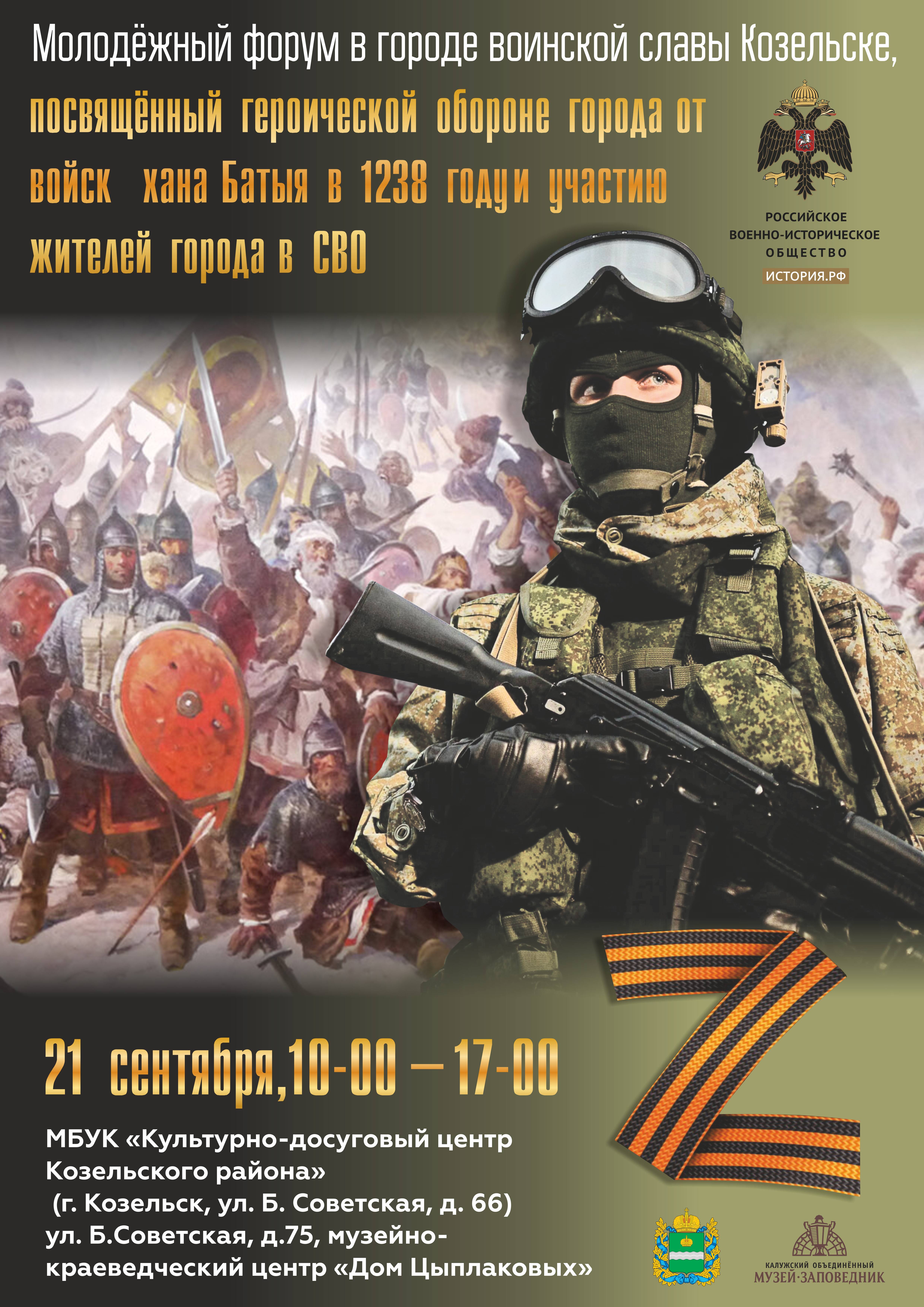21 сентября 2024 года Калужский объединенный музей-заповедник совместно с Российским военно-историческим обществом проводит Молодёжный форум в городе воинской славы Козельске, посвящённый героической обороне города от войск хана Батыя в 1238 году и участию жителей города в специальной военной операции.
