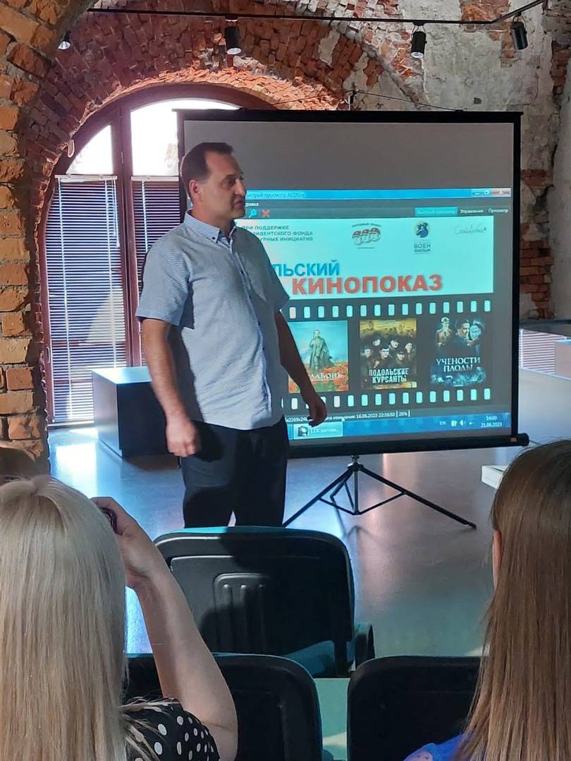 Перед показом состоялась творческая встреча с участниками проекта «Сельский кинопоказ» - членом Союза кинематографистов России, актером театра и кино, директором Обнинской ассоциации «Народный проект» И. Фурманюком и историческим консультантом студии «Военфильм», пресс-секретарем ассоциации «Народный проект» А. Первовым.