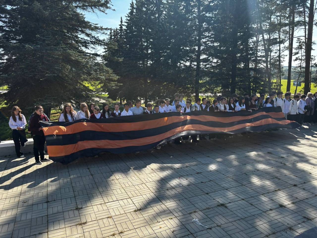 В завершение церемонии на мемориале была развернута большая Георгиевская лента. Этот мощный символ стал олицетворением неразрывной связи поколений, преемственности подвига и вечной памяти о Великой Победе.