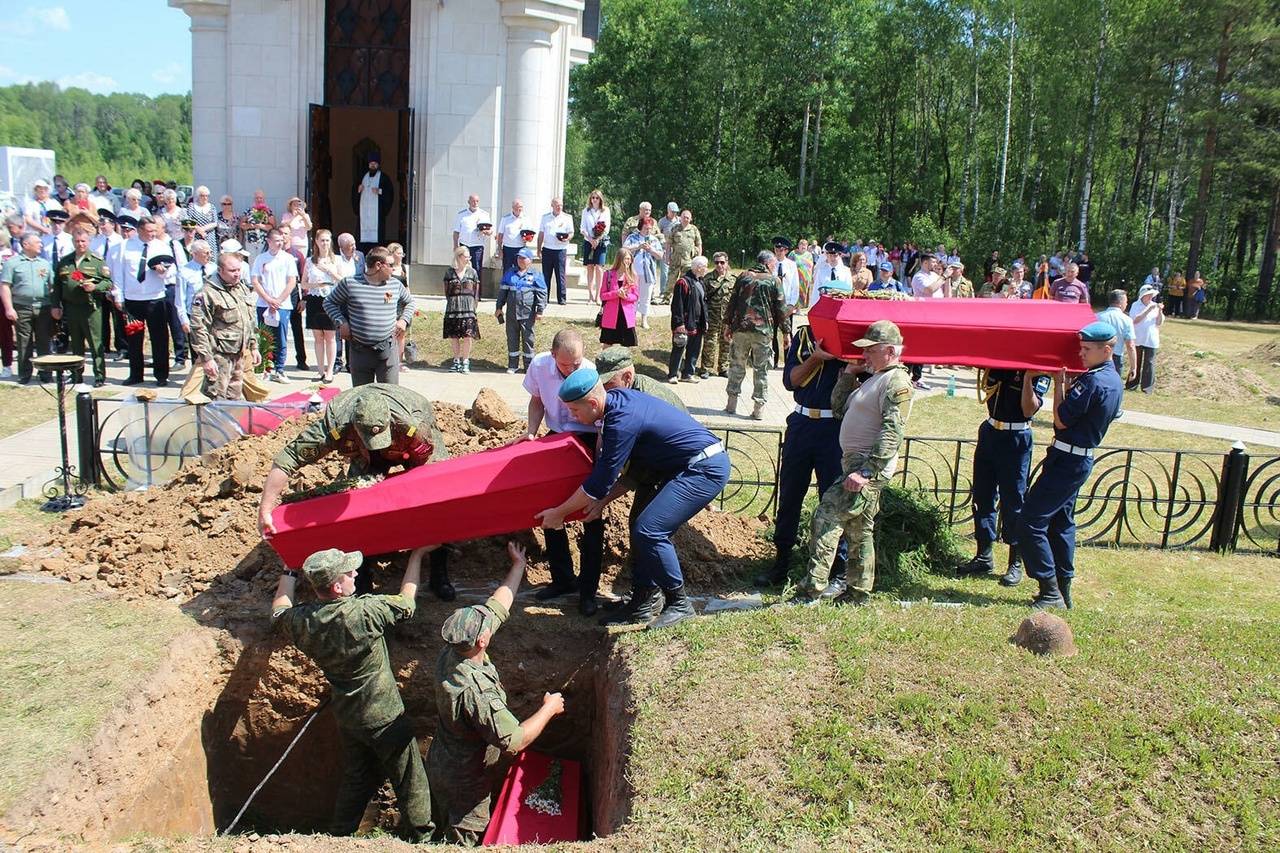 В ходе митинга в братскую могилу захоронили останки еще 56 советских воинов, павших за Родину в годы Великой Отечественной войны.