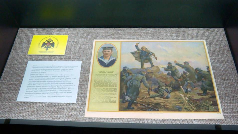В ВИЦ «Маршал Победы - Георгий Константинович Жуков» начала свою работу выставка, приуроченная ко Дню военно-морского флота. На выставке представлены репродукции картин советских художников, посвященные героям Великой Отечественной войны.
