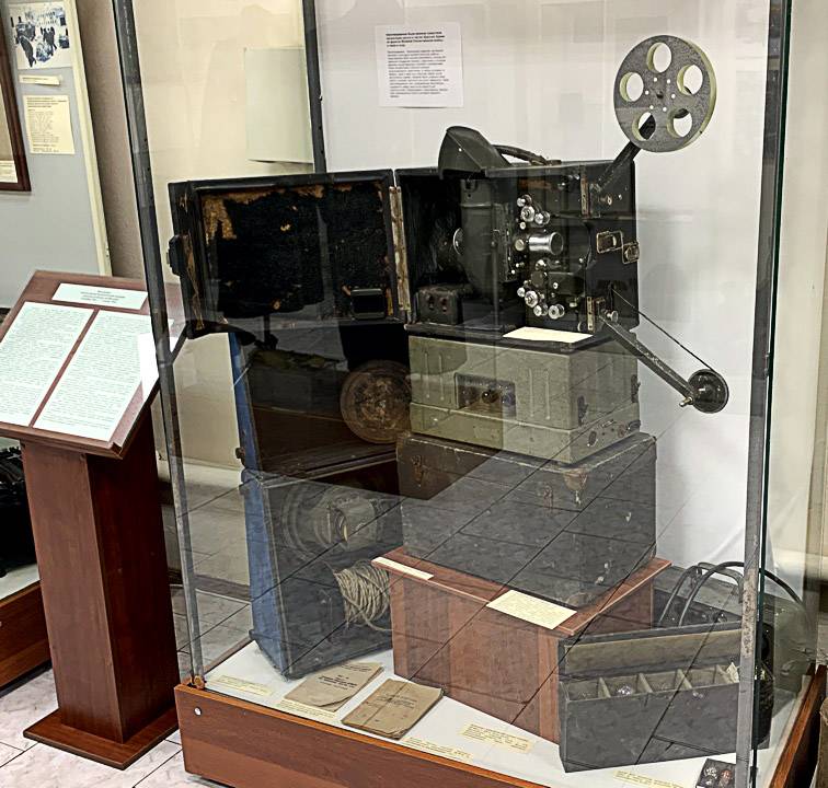 Представленный на выставке комплект киноустановки вдвойне уникален: он прошёл по фронтам и тылам Великой Отечественной войны, многое «повидал» сам, чтобы бойцам-красноармейцам доставить радость и воодушевить их на подвиги!