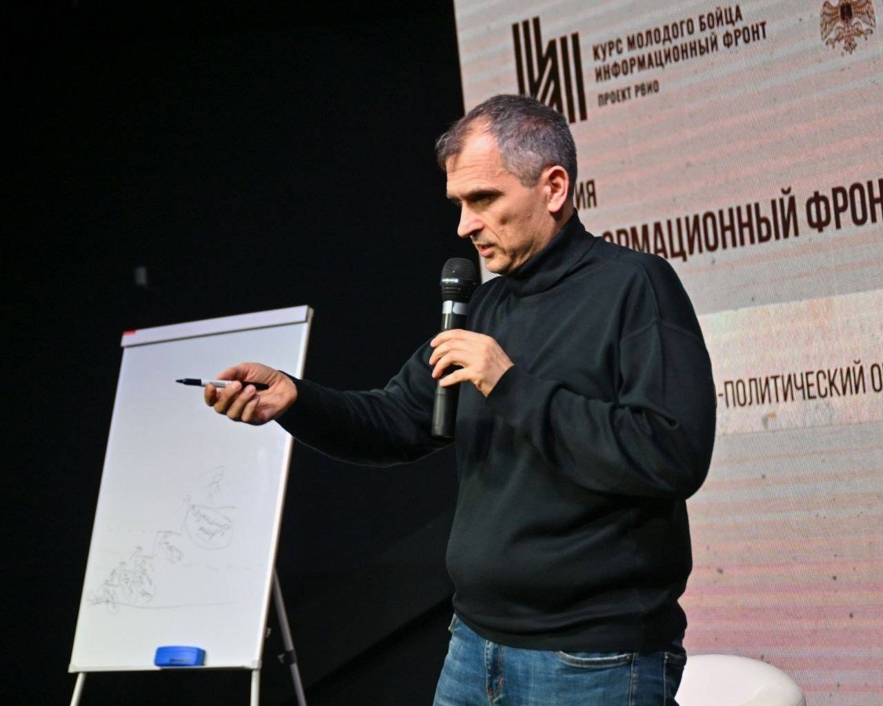 Известный блогер, военкор, политический обозреватель Юрий Подоляка встретился с участниками Всероссийского историко-просветительского форума «Курс молодого бойца. Информационный фронт», который проходит в Калуге.
