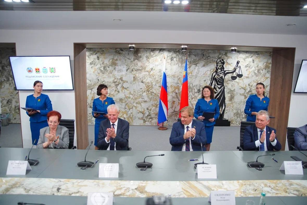 📃 Также в рамках мероприятия состоялось важное событие для укрепления межпарламентского взаимодействия в целях сохранения исторической памяти – четырехстороннее соглашение о сотрудничестве заключили Парламент Кузбасса, Алтайское краевое Законодательное Собрание, Псковское областное Собрание депутатов и Законодательная Дума Томской области. В планах – обмен выставочными, музейными, архивными и информационными материалами о Великой Отечественной войне; проведение совместных мероприятий и многое другое.