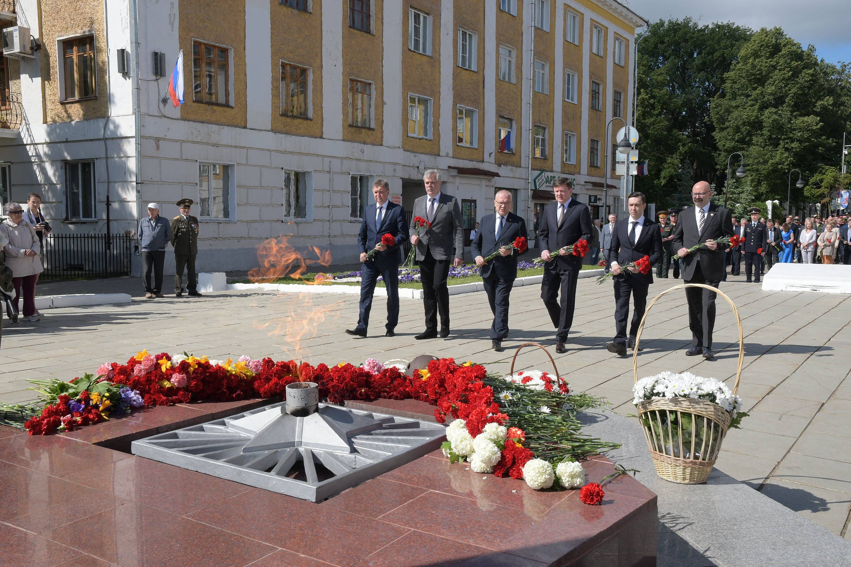 Сегодня утром на Набережной Грина возложили цветы к мемориалу «Воинам-кировчанам». К «Вечному огню» вместе с горожанами пришли врио Губернатора Кировской области Александр Соколов, Председатель Заксобрания Роман Береснев и депутаты ОЗС, руководители органов исполнительной власти.
