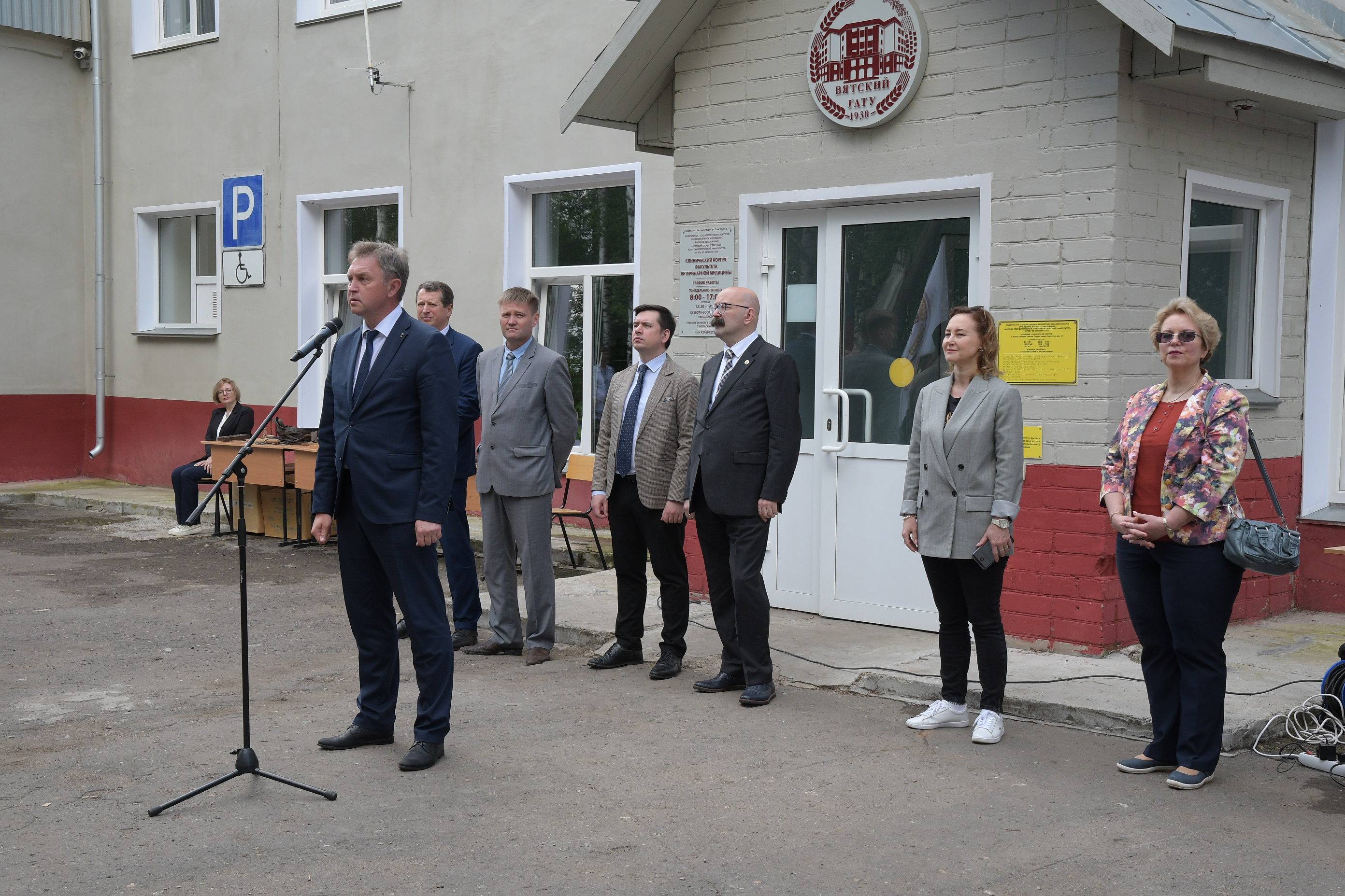 Экспозицию разместили у корпуса, где базируется факультет ветеринарной медицины. Осмотрев мощности факультета, Роман Береснев обсудил с ректором Вятского ГАТУ Еленой Симбирских результаты, достигнутые за последнее время. Для ветеринарного направления увеличено количество бюджетных мест, в корпусе проведен ремонт, студенты осваивают будущую профессию на новом оборудовании.