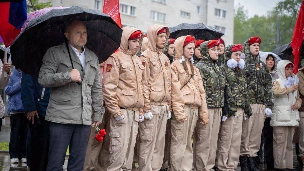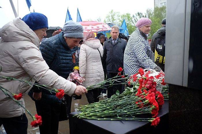 Несмотря на сильный дождь, в сквере Трудовой Славы вятской столицы собрались руководители области и города, работники и ветераны кировских предприятий, общественные активисты, юнармейцы и кадеты, педагоги и воспитанники Детско-юношеского центра имени святого благоверного князя Александра Невского. Перед собравшимися у мемориальной стелы «Киров – Город трудовой доблести» выступили губернатор региона Александр Соколов, председатель областного Законодательного Собрания и КРО РВИО Роман Береснев, глава города Кирова Елена Ковалева.