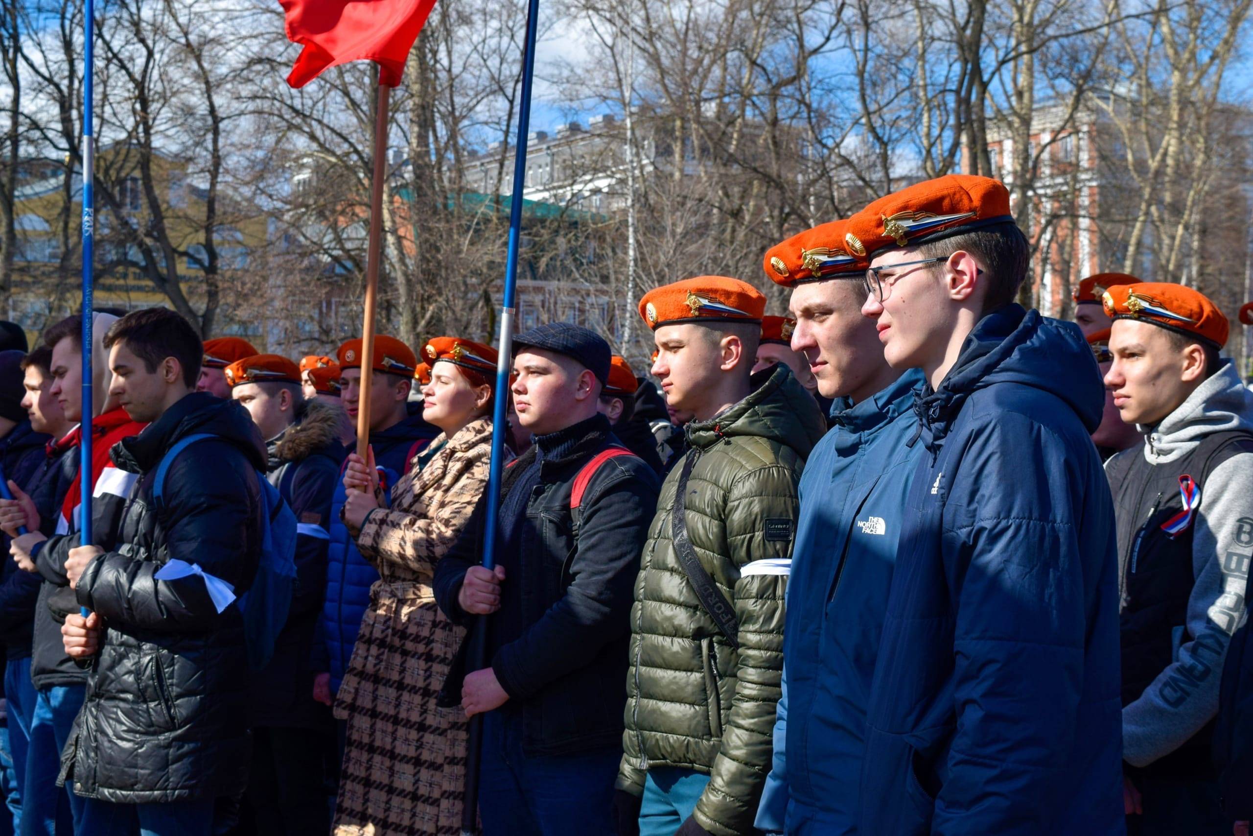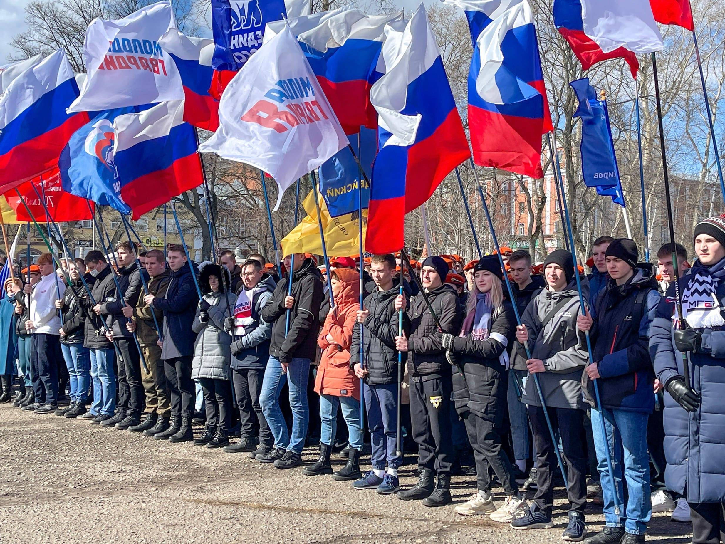 В поддержку российской армии курсанты Кировского пожарно-спасательного юридического полицейского колледжа выстроились в букву V. В завершение митинга прошел флешмоб в поддержку военных «За Россию, за Президента, за победу».