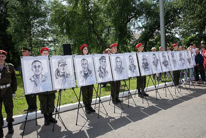 Церемония состоялась в сквере у областного Дома народного творчества, откуда отправлялись в зону специальной военной операции мобилизованные кировчане. Участниками мероприятия стали губернатор области Александр Соколов, главы города Елена Ковалева и горадминистрации Вячеслав Симаков, митрополит Вятский и Слободской Марк, исполнительный директор КРО РВИО Альбина Покручина, бойцы СВО и члены их семей, ветераны, представители общественных патриотических организаций и силовых структур. Кировские юнармейцы и кадеты – воспитанники Центра имени Александра Невского – вошли в состав Знаменной группы и встали в Почетный караул у портретов земляков, погибших в ходе проведения СВО.