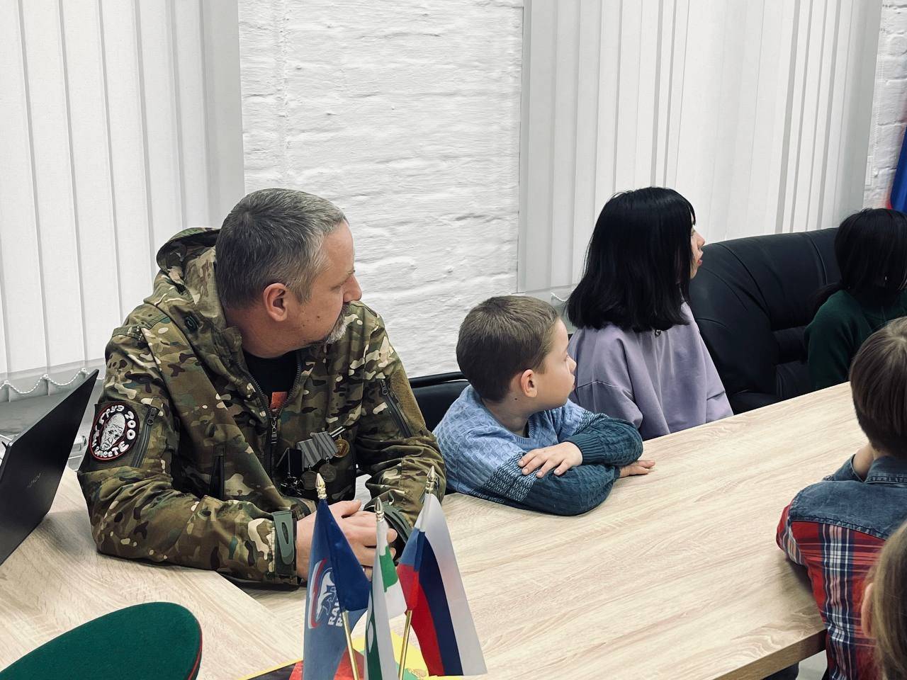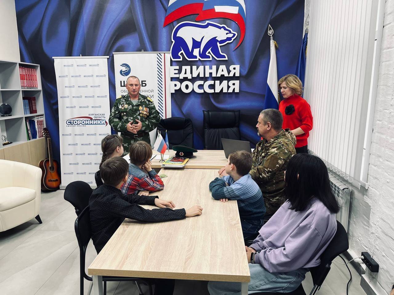 С большим интересом ребята слушали и рассказы наших Героев - общественника, член регионального отделения РВИО в Курганской области Виталия Нохрина и участника специальной военной операции, депутата Курганской городской Думы Дениса Птицына.