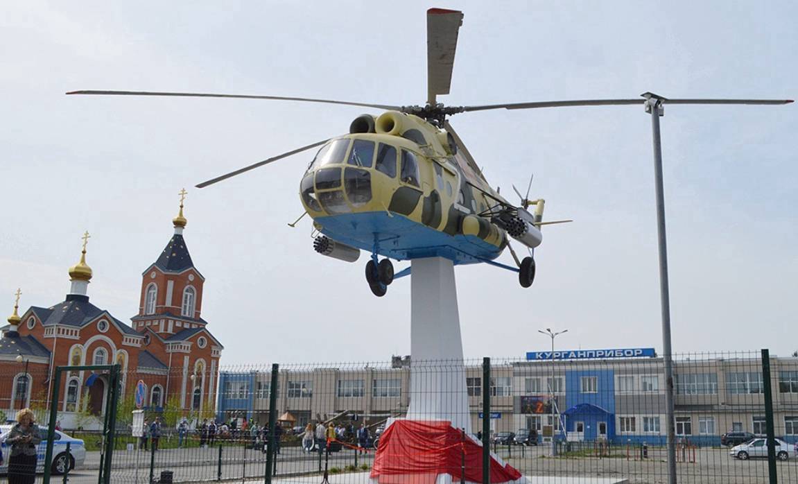 В День Победы в Кургане в поддержку Вооруженных Сил Российской Федерации, проводящих спецоперацию на Украине, торжественно открыли обелиск легендарному вертолету МИ-8