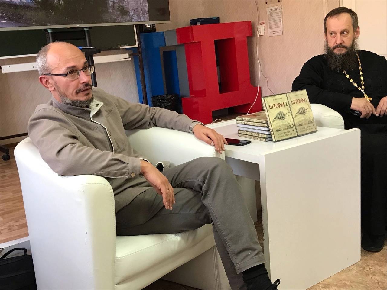 «Шторм Z. У вас нет других нас» - книгу с таким названием презентовал участник специальной военной операции, писатель и публицист Даниил Туленков. Он попал на СВО из мест заключения, а теперь рассказывает о тех событиях, которые произошли с ним во время боёв. Во встрече также принял участие отец Михаил Шушарин, который был на СВО. Они рассказывали студентам о том, что видели своими глазами, о том, как участвовали в военных действиях, о том, что переживали, что чувствовали.