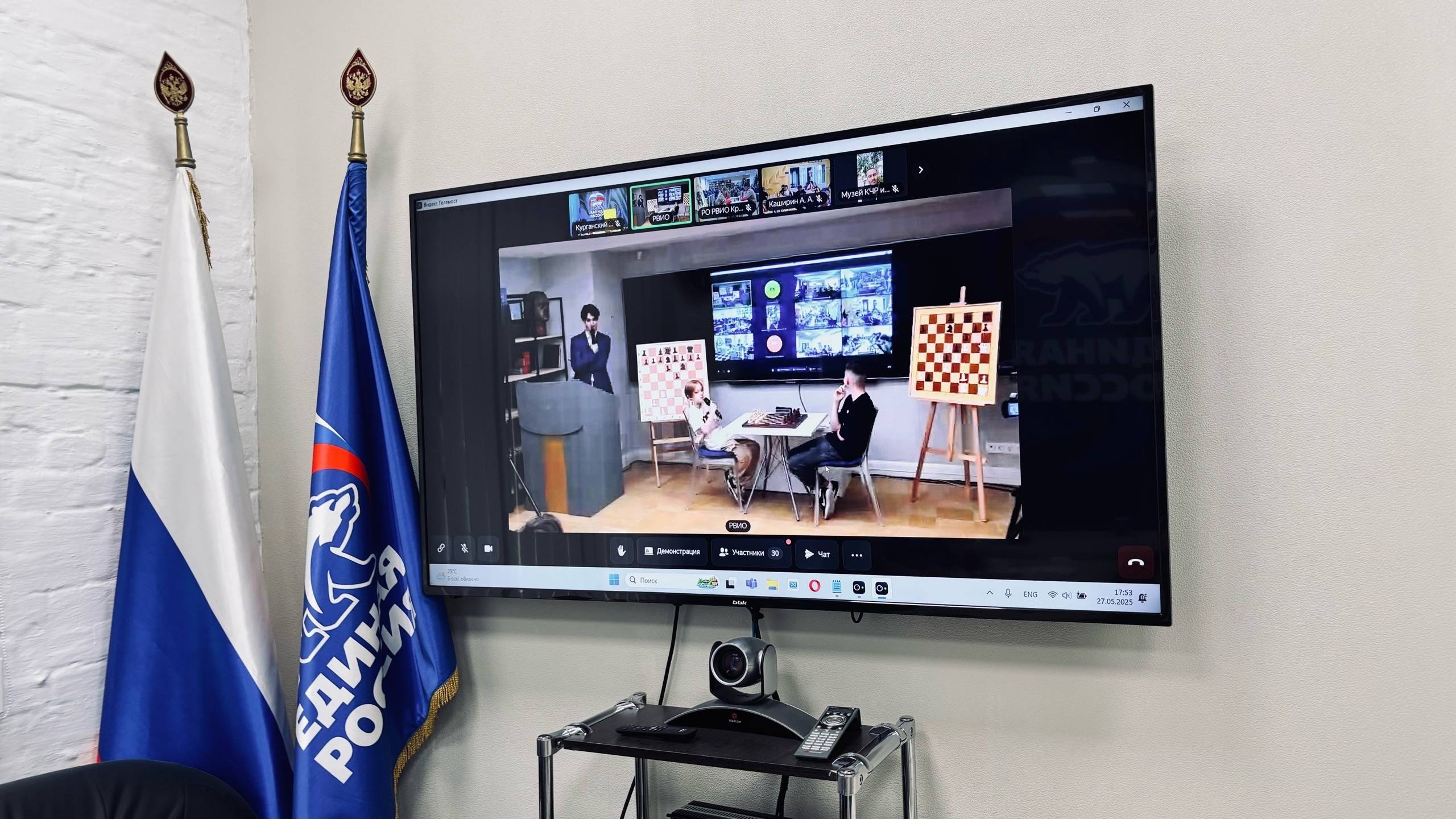 В Кургане на площадке Штаба общественной поддержки состоялся мастер-класс в формате видеоконференции с участием юных чемпионов по шахматам Глеба Щеглова и Алисы Юнкер.