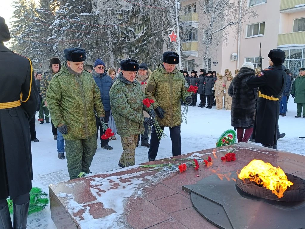 В завершение церемонии, в знак глубокого уважения и памяти, участники возложили цветы к стеле «Зауральцы – Герои Советского Союза» и к Вечному Огню Мемориального комплекса воинов-курганцев.