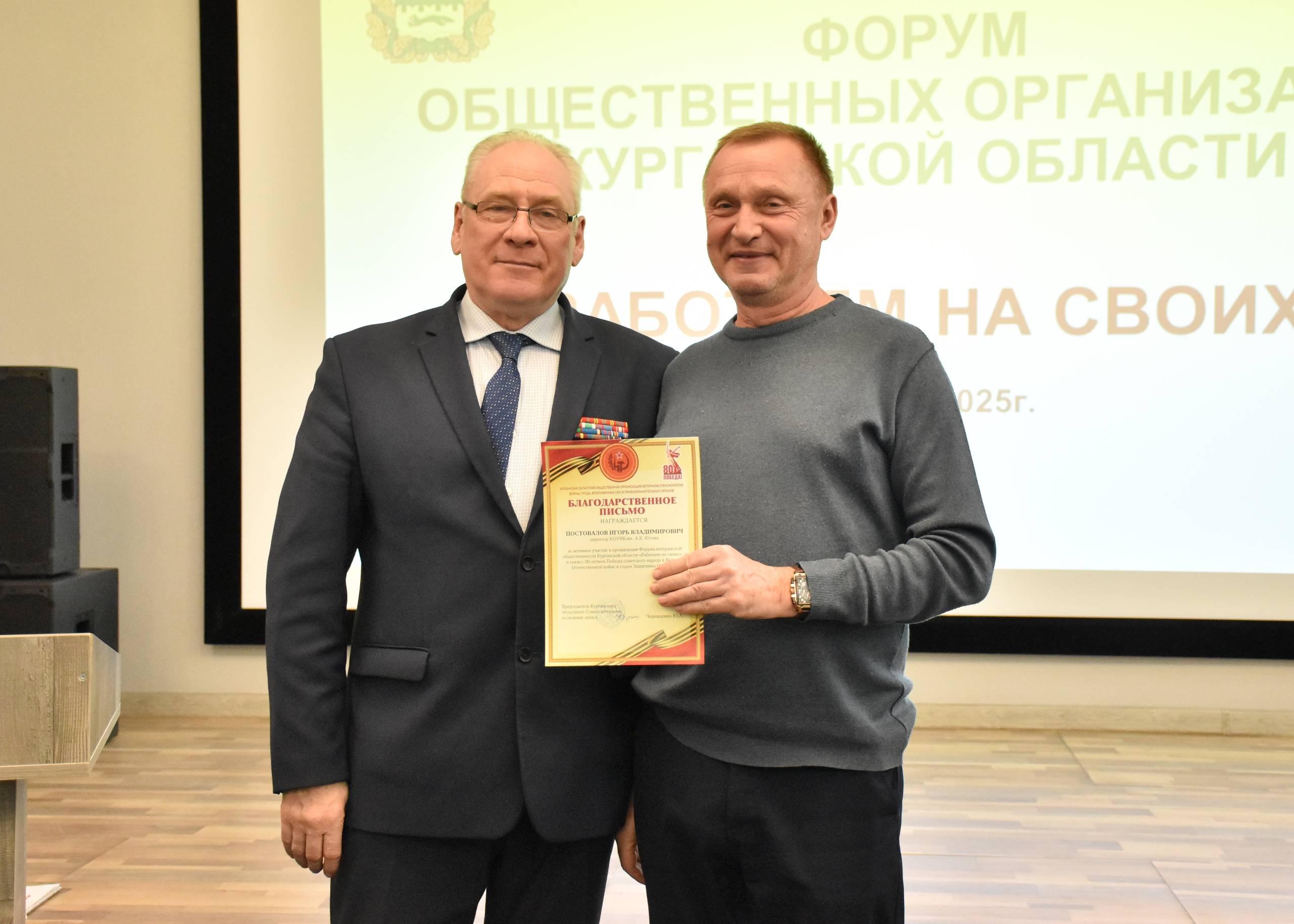 На встрече Курганский областной Совет ветеранов войны, труда, Вооружённых Сил и правоохранительных органов подвёл итоги уходящего года, посвящённого 80-летию Великой Победы и Года защитника Отечества. Участники форума обсуждали также и планы совместной деятельности на 2026 год.