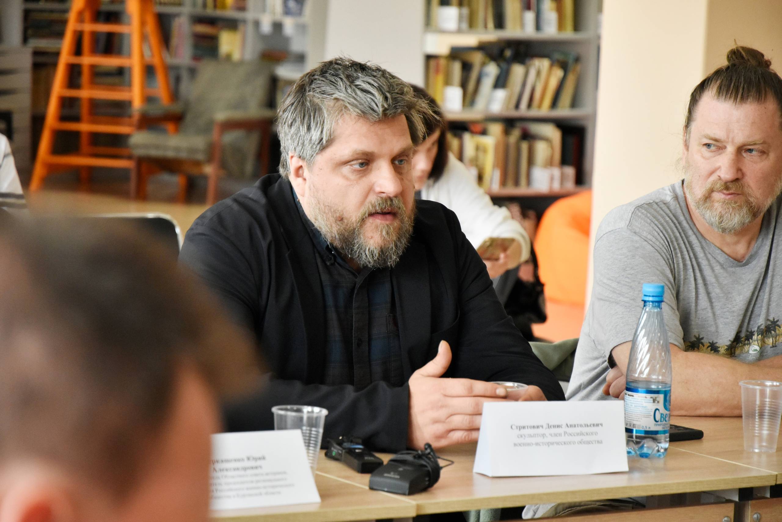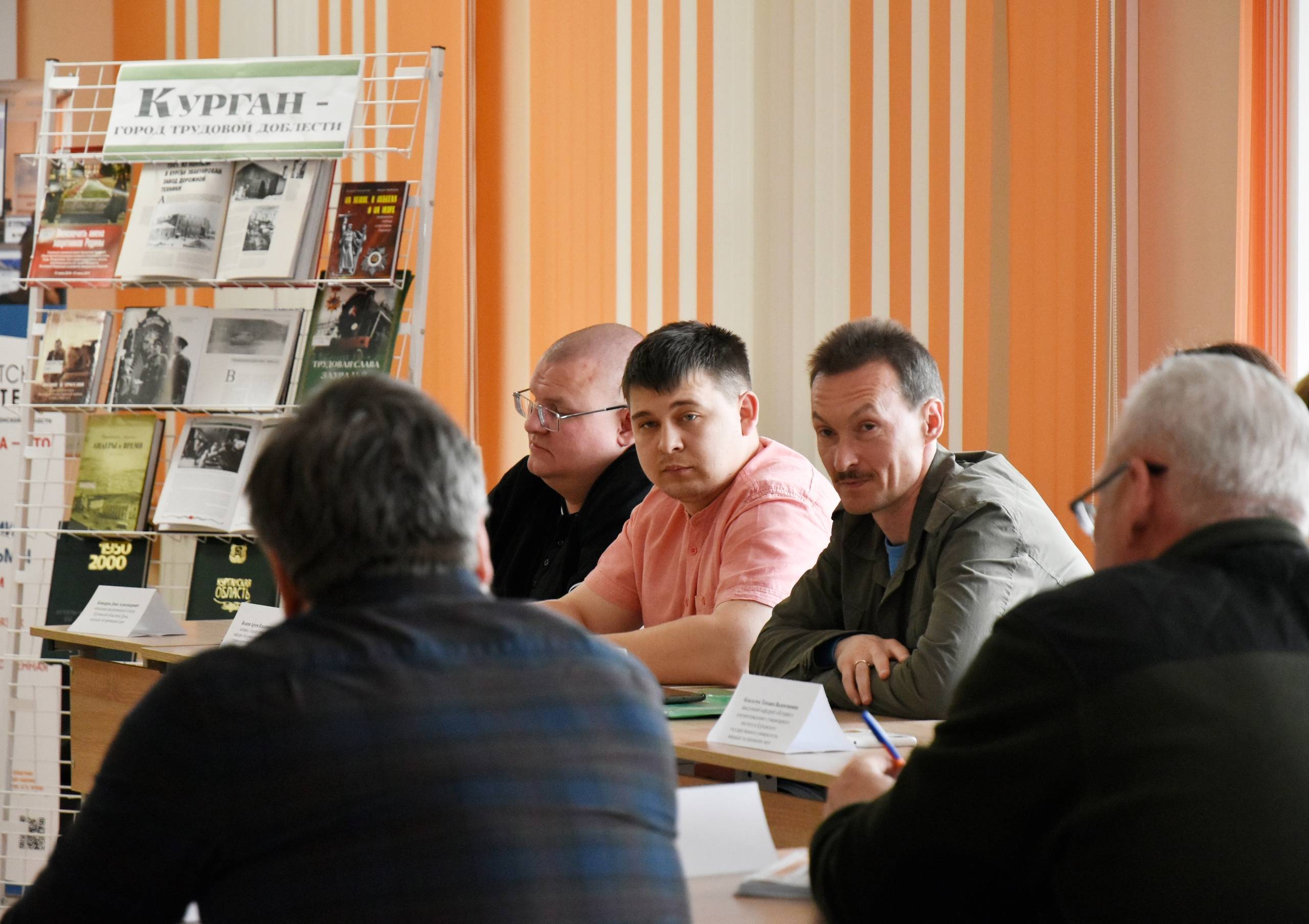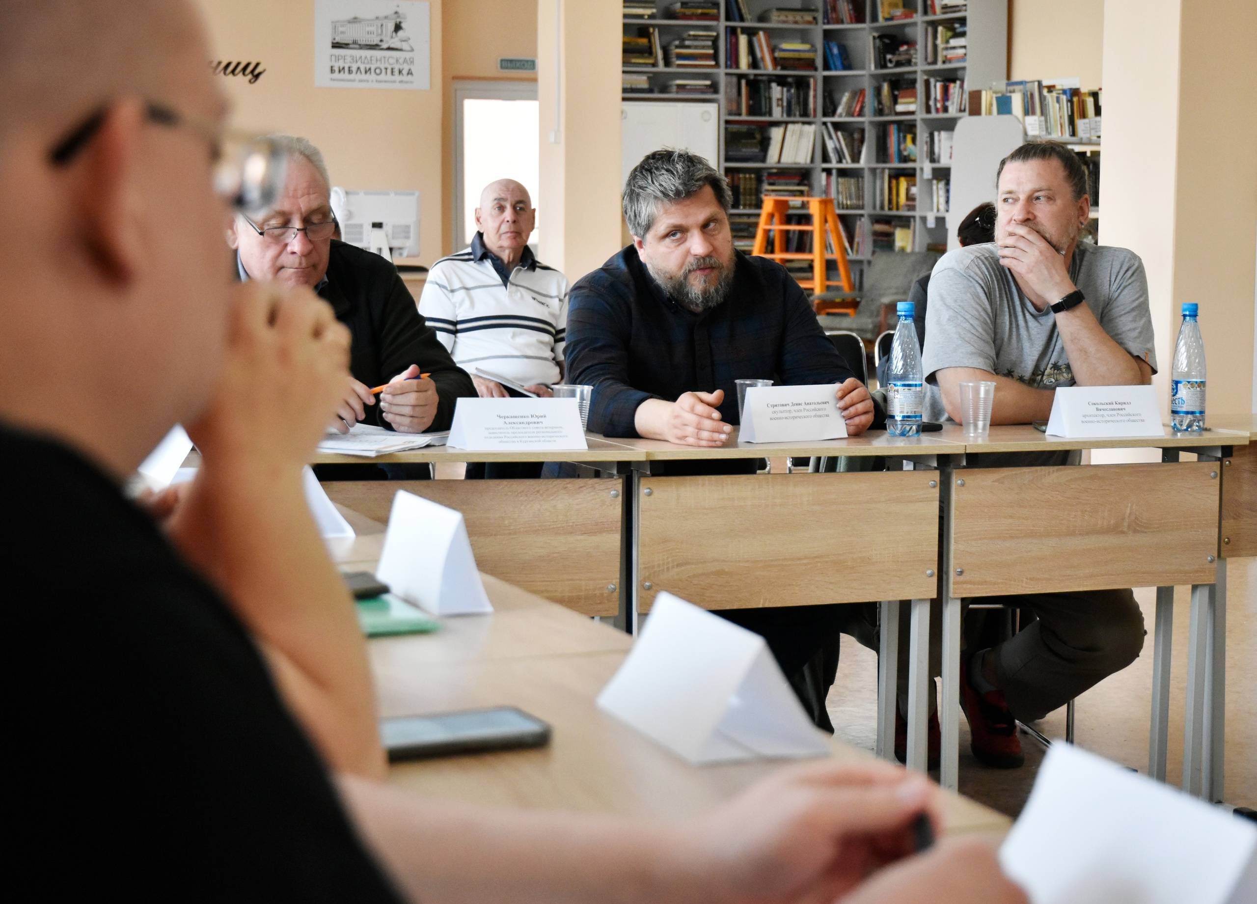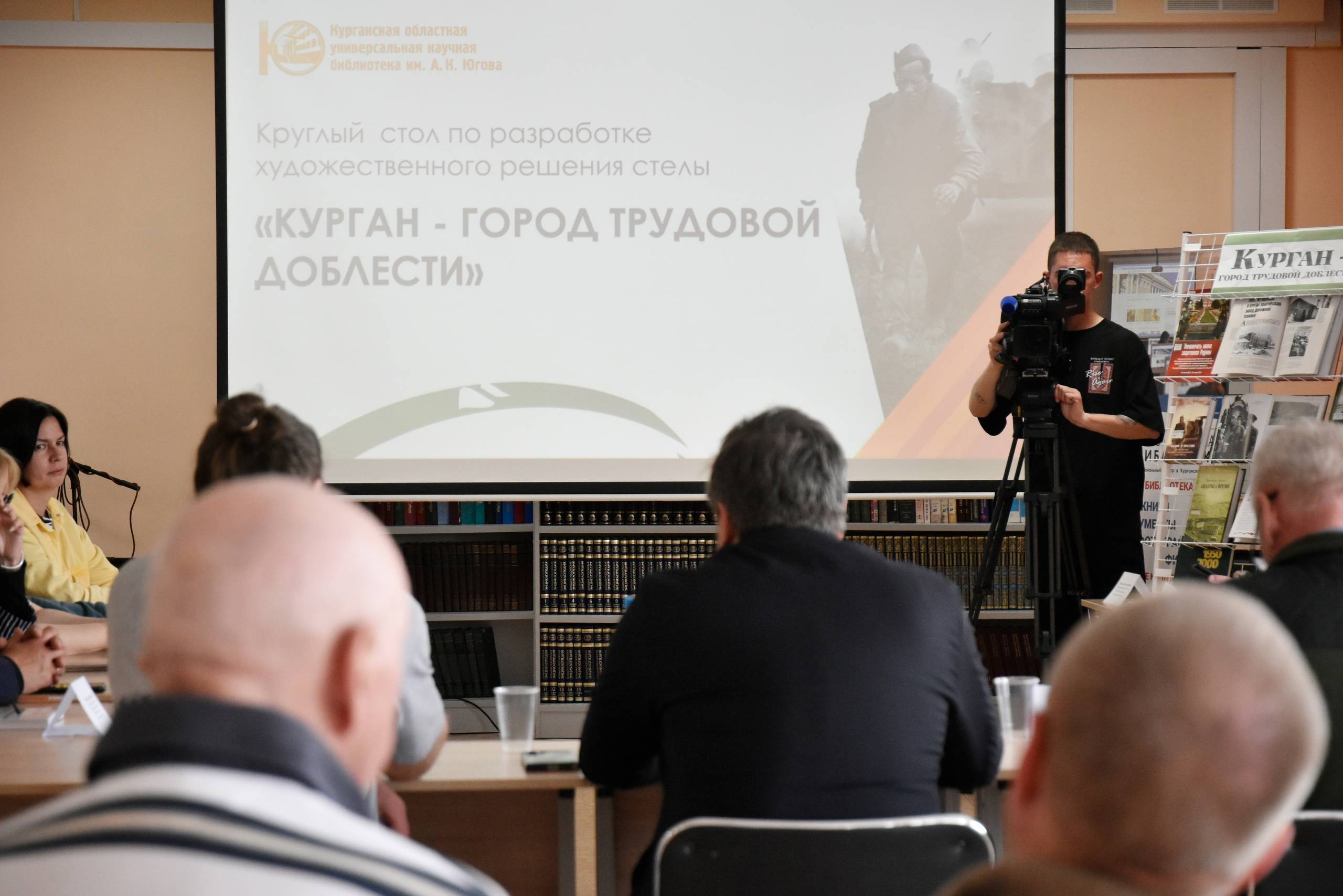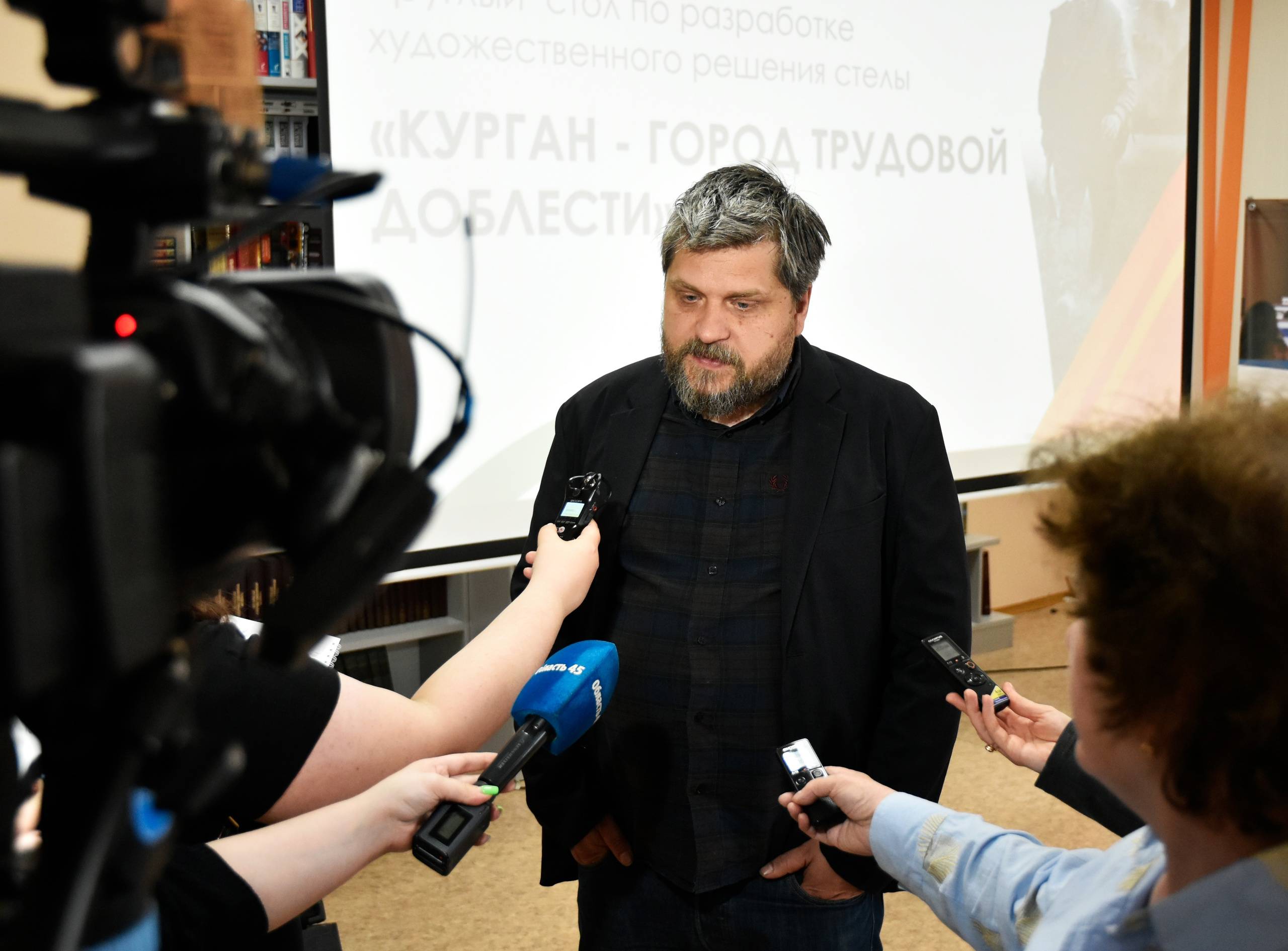 Денис Стритович познакомился с нашим городом, посетил места, которые курганцы предложили для установки стелы. В областной библиотеке вместе с историками, представителями общественности и ветеранами Денис Стритович обсудил, какие знаковые события, личности, предметы и элементы эпохи должны быть отражены в скульптурной композиции.