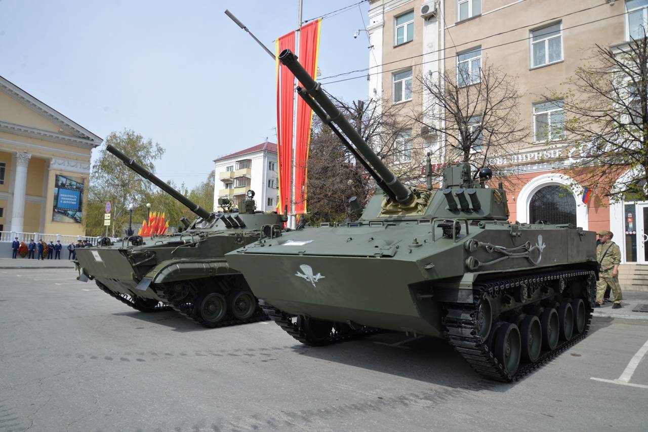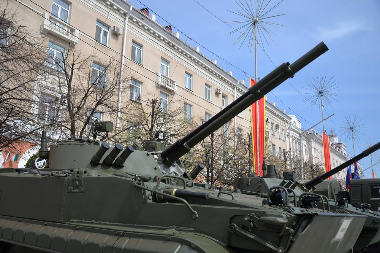 Среди представленных на выставке машин – две дивизионные пушки, боевая машина БМ-13 «Катюша», гаубица-пушка, боевая машина «Град», КАМАЗ, танк Т-70 и мотоцикл «Урал». Также здесь находилась техника, участвующая в Параде Победы. Это БМП-3 и БМД-4М.