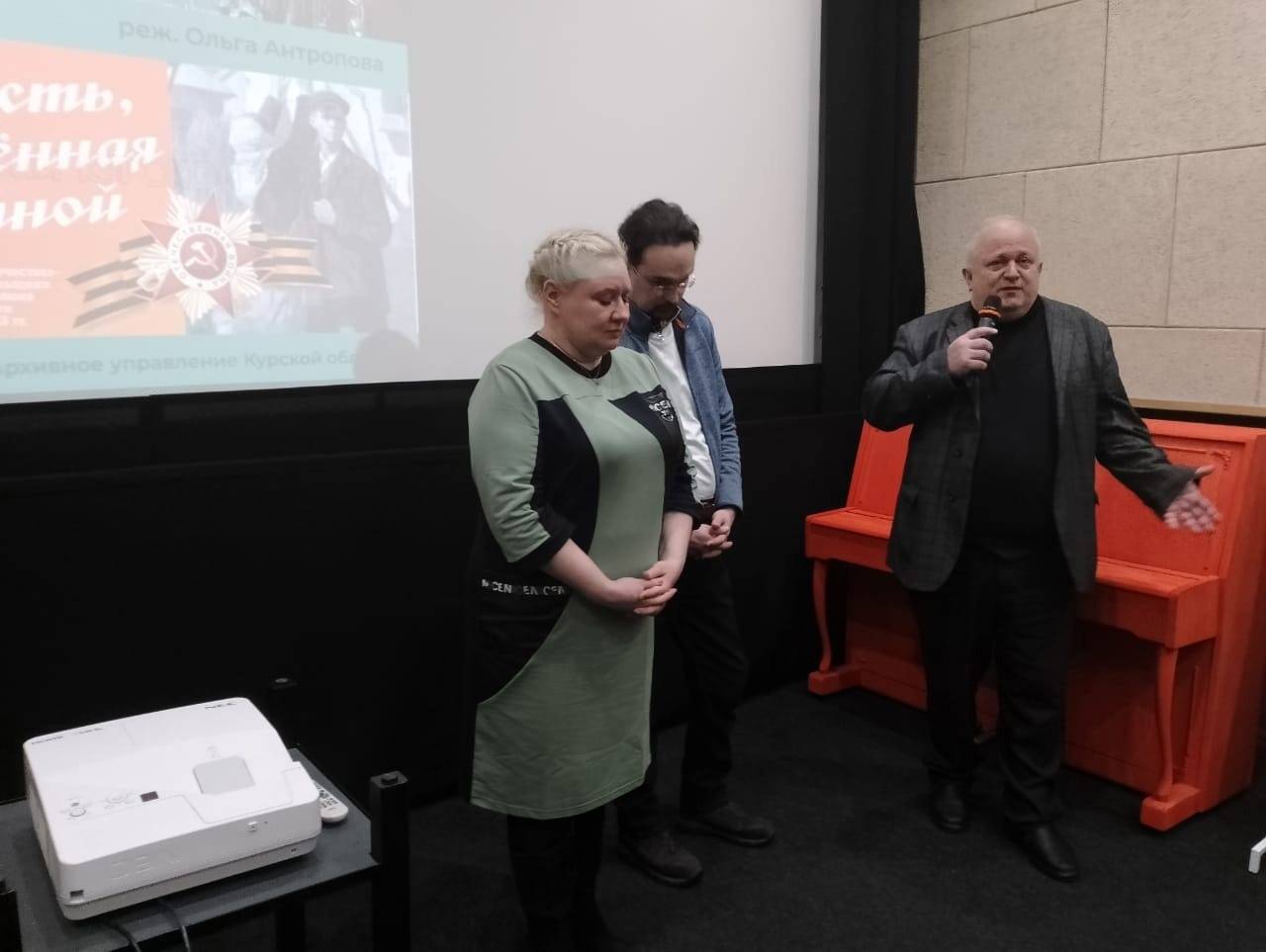 Участники поездки приняли участие в представлении документального фильма «Молодая гвардия города Льгова», созданного уроженкой Курской области, режиссером Ольгой Антроповой. Председатель Совета РО РВИО, профессор В.В. Коровин рассказал зрителям об особенностях военно-исторического писка, результаты которого вошли в содержание презентуемых на фестивале фильмов.