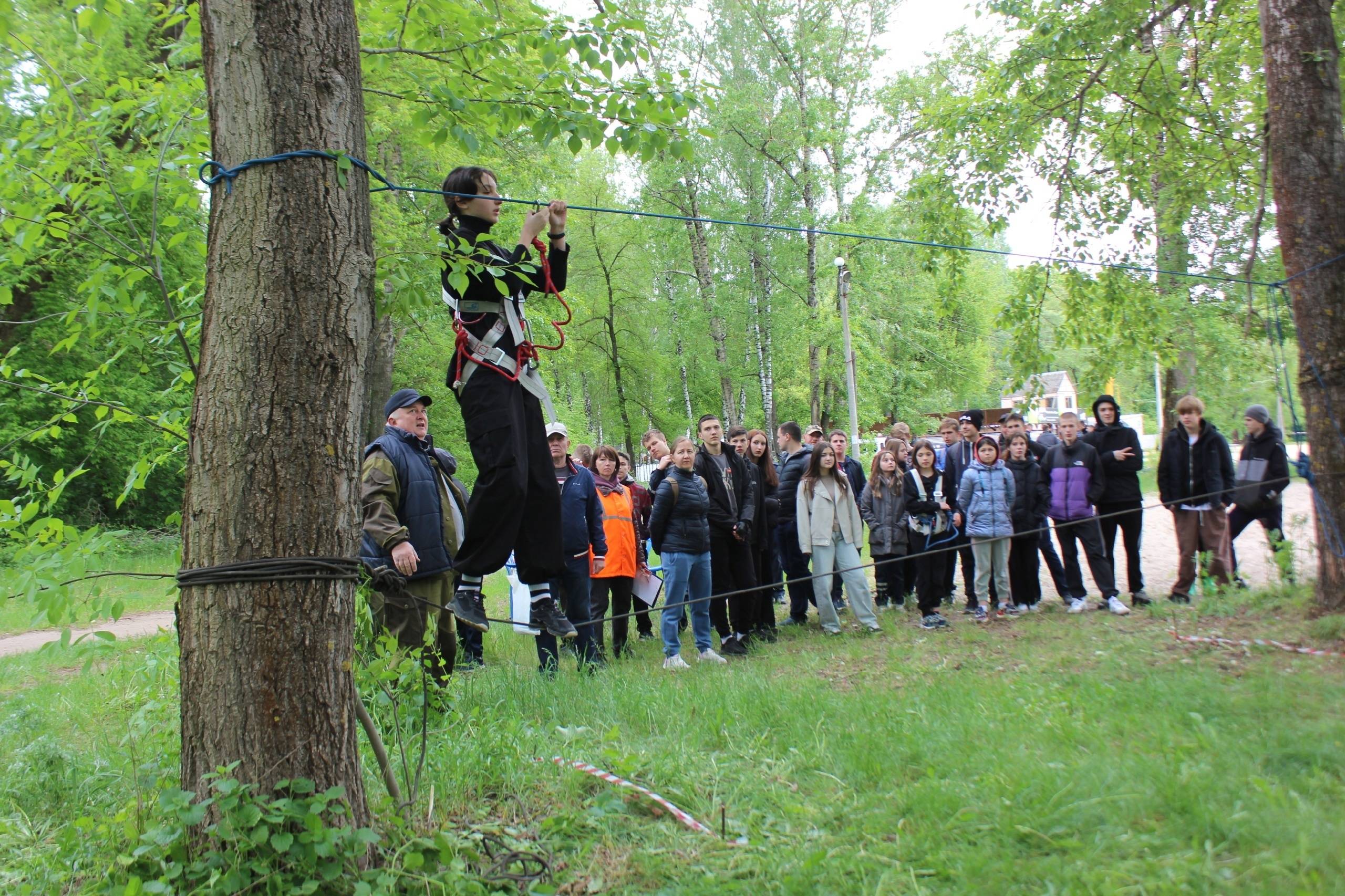 Дистанция эстафеты включала в себя элементы техники пешеходного туризма, где участники продемонстрировали свою силу и ловкость при преодолении навесной переправы и движении по параллельным веревкам, прохождении условных болота по жердям и оврага – с помощью вертикально закрепленного «маятника».