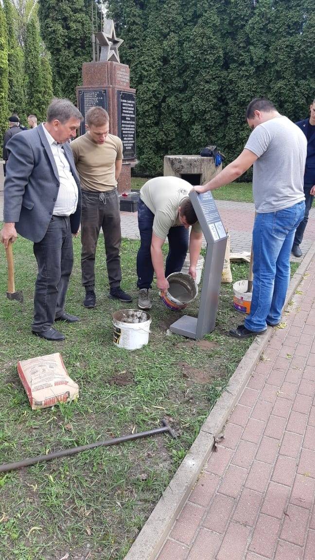 Были проведены работы по бетонированию оснований информационных табличек, установленных перед памятными объектами периода обороны города Курска.