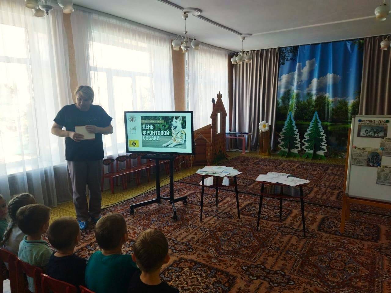 В честь Дня фронтовой собаки региональное отделение РВИО и Центр историко-культурного наследия провели мероприятие в детском саду №78. Руководитель отдела краеведения и популяризации культурного наследия Центра Ольга Ткаченко рассказала ребятам о роли служебных собак в ходе Великой Отечественной войны.
