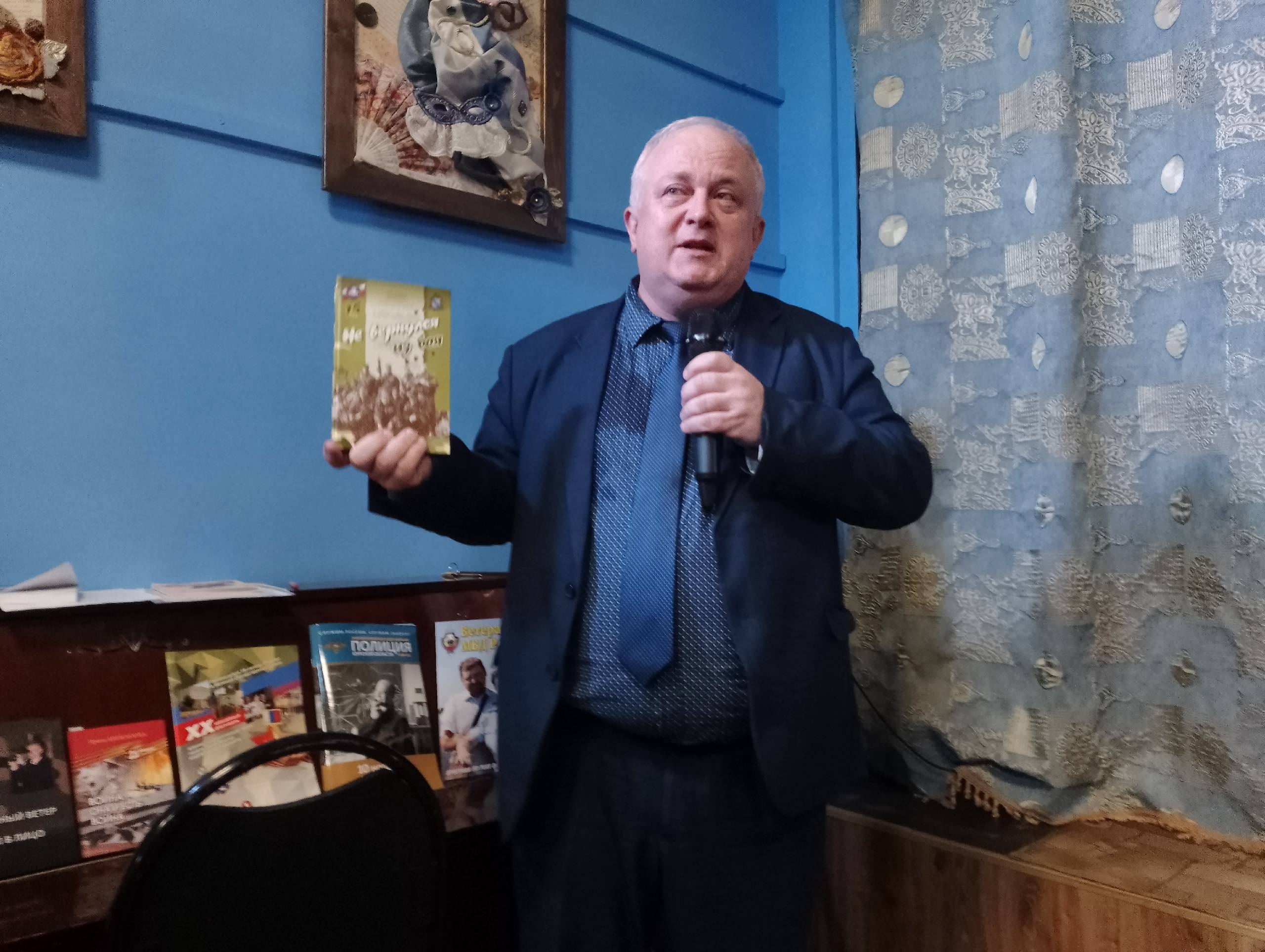 Своими воспоминаниями поделился Председатель Совета РО РВИО в Курской области В.В. Коровин, руководивший секцией туризма Дворца пионеров, в которой занимался Андрей Хмелевской. Владимир Викторович представил издания, посвящённые Андрею Александровичу и другим Героям России, уроженцам Курской области, а также землякам, погибшим в ходе специальной военной операции.