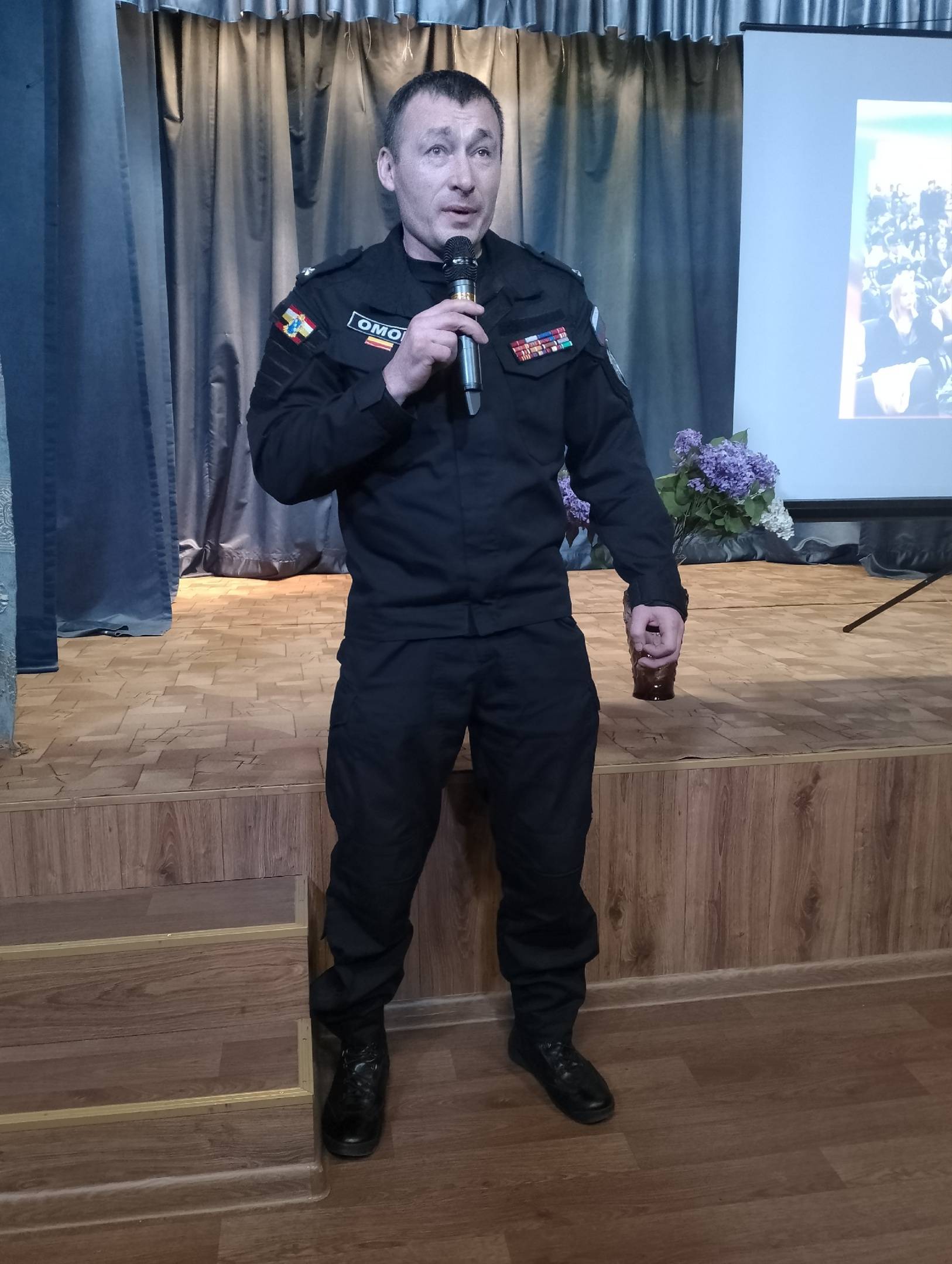 Сослуживцы Андрея Хмелевского: подполковник милиции в отставке, бывший зам. командира курского ОМОНа, член РО РВИО В.П. Быканов ; кавалер Ордена мужества, подполковник в отставке В.А. Конорев, командир ОМОНа «Финист», подполковник А.А. Реутов поделились с молодежью мыслями о предназначении воина-защитника, вспомнили своего боевого товарища, дали советы юным участникам встречи.Также участие в мероприятии принял член РО РВИО, студент ЮЗГУ Павел Потапенко.