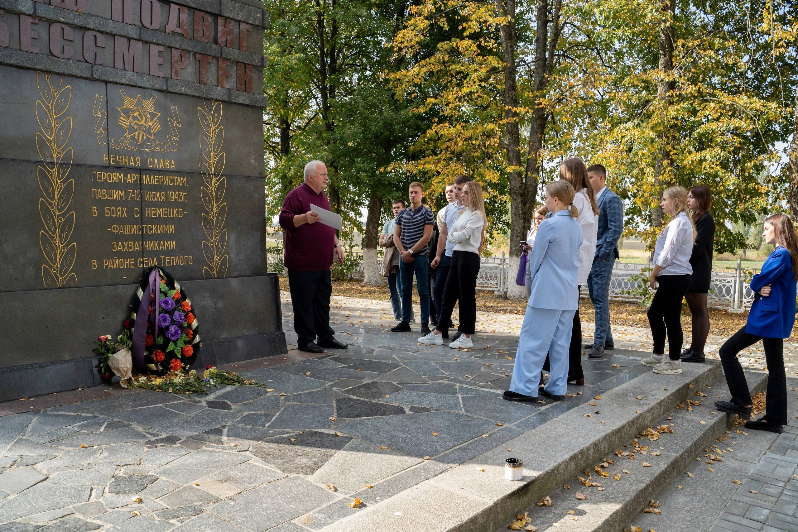 Экскурсанты посетили мемориальные комплексы «Поклонная высота 269» и «Курская битва», памятники героям-артиллеристам и героям-саперам, мемориал «Воинам 13-й армии», а также памятные знаки, которые были установлены спортивным радиоклубом «Спорадик» ЮЗГУ и региональным отделением РВИО, посетили возложили цветы к могиле Героя Советского Союза, участника Курской битвы Михаила Фомина, 100-летие которого отмечалось в этот день. Он был наводчиком орудия 2-го дивизиона 159-го гвардейского артиллерийского полка (75-я гвардейская стрелковая дивизия, 13-я армия Центрального фронта), гвардии сержантом.В тот же день перед студентами выступил руководитель школьного музея боевой славы 75-й гвардейской дивизии, член РВИО Олег Якунин. Он рассказал о жизни и самоотверженном подвиге героя-артиллериста, зачитал строки из его личных писем, пронизанных любовью к Родине, скорбью о погибших, решимостью сражаться до последнего вздоха и верой в победу.