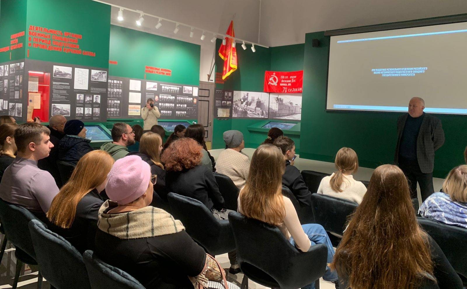 Участники поездки возложили цветы и к памятнику Героям-саперам, 80-летие открытия которого будет отмечаться 30 ноября. После этого в музее истории железнодорожной станции Поныри состоялась премьера документального фильма «Спасибо за память, потомки», созданного студентами и сотрудниками Юго-Западного госуниверситета при поддержке регионального отделения РВИО. У зрителей была возможность пообщаться с авторами фильма Анастасией Стародубцевой, Дмитрием Макаевым и Екатериной Лоторевой, которые рассказали об архивном поиске документов об истории сооружения и реконструкции первых памятников, об уникальной кинохронике, снятой в день их открытия и впервые использованной в фильме.
