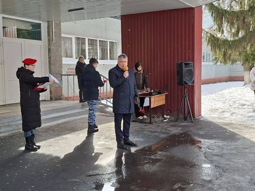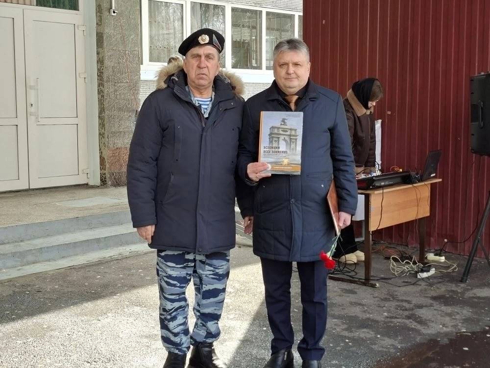 Открыл торжественный митинг директор школы, член регионального отделения РВИО Сергей Остриков, который выразил слова соболезнования родным и близким погибшего воина, поблагодарил родителей за воспитание настоящего героя и подчеркнул, что память о вечно молодых ребятах, погибших при исполнении воинского и служебного долга навсегда останется не только в сердцах родных и близких, но и всех жителей родного города. Владимир Петрович Быканов в своей речи сказал о том, как важно помнить их подвиги защитников Отечества. Владимир Петрович подарил директору школы Сергею Петровичу Острикову памятную книгу о наших героях, отдавших свою жизнь при исполнении воинского долга в ходе специальной военной операции. В книге есть материалы, посвящённые выпускникам и нашей школы.