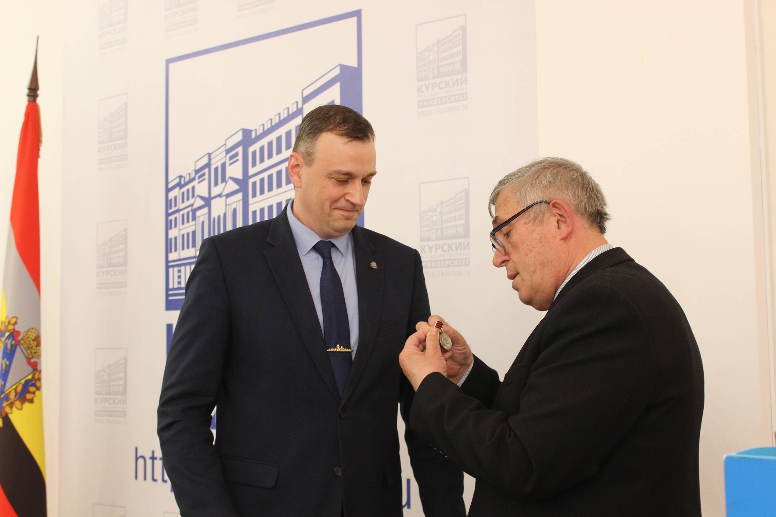 Награду вручил руководитель Центра «Поиск», член Совета РО РВИО Игорь Цуканов в ходе научно-практической конференции «Великая Победа: 80 лет памяти, битвы за правду истории и воспитания патриотов», проводившейся 14–15 мая в Курском государственном университете Международной, был награждён.