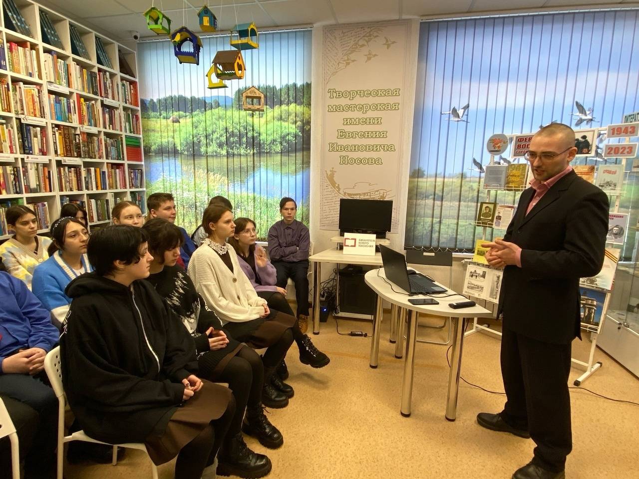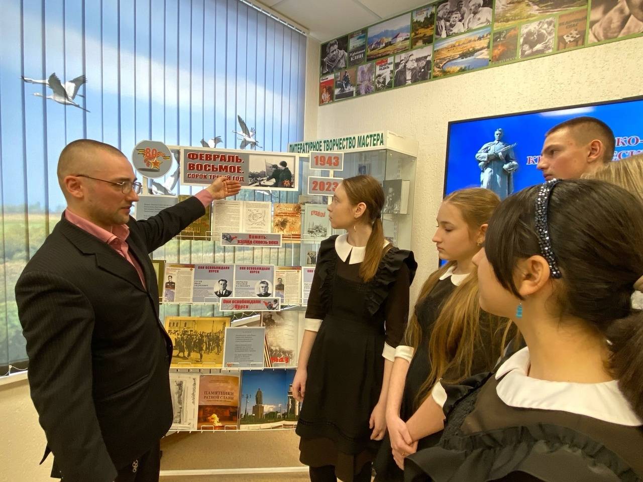 В библиотеке нового поколения им. Е.И. Носова состоялся историко-краеведческий альманах «Освобождение города Курска: по страницам великой Победы» для ребят из школы № 34. Кандидат исторических наук, член РВИО А.Ю. Золотухин рассказал об интересных фактах истории освобождения Курска, выявленных им с коллегами в Центральном архиве Министерства обороны РФ. В рамках альманаха демонстрировались кадры из документального фильма «Курск. Возвращение». В заключительной части встречи школьники вспоминали имена героев, увековеченные в названиях улиц и площадей родного города.