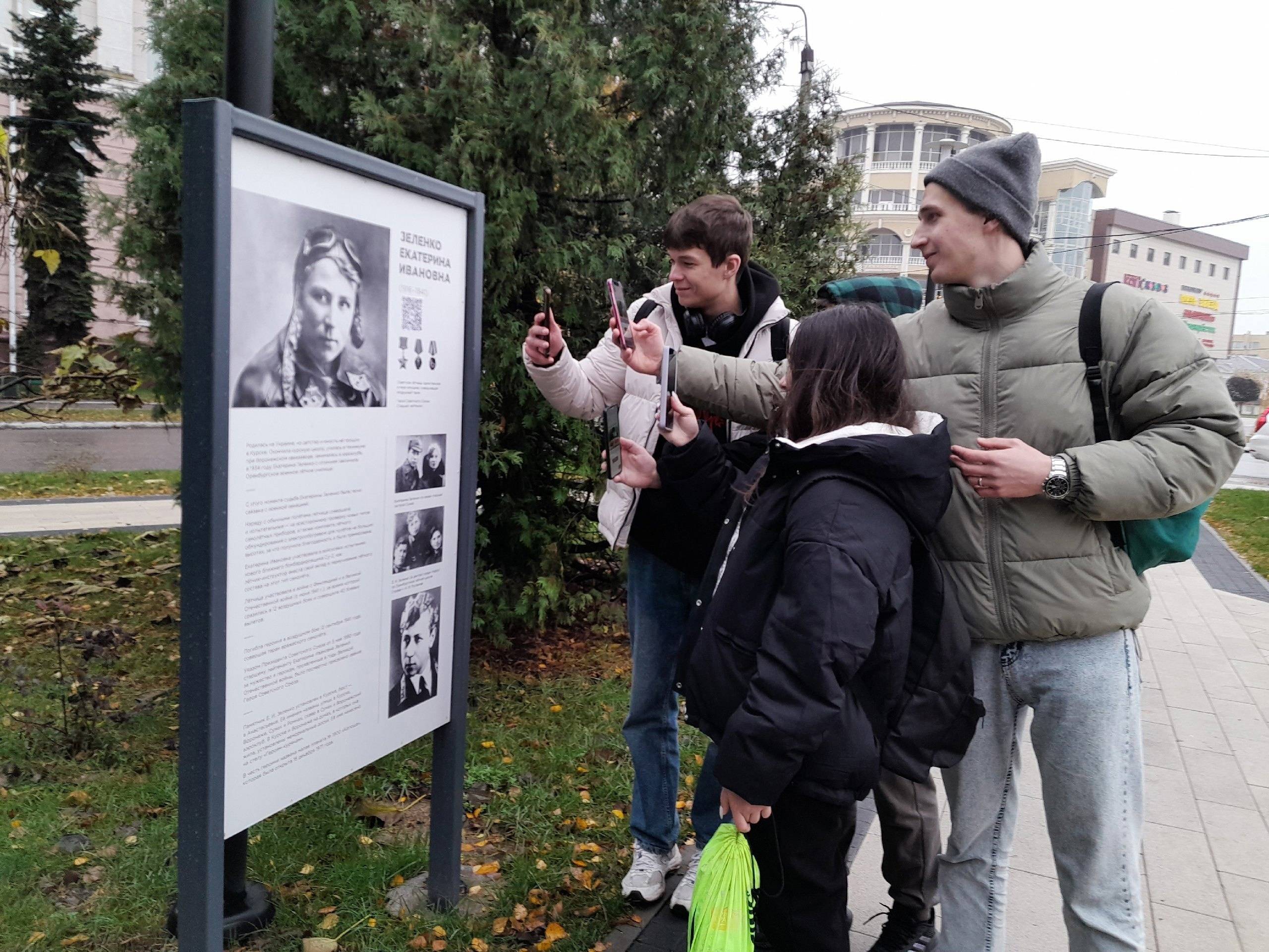 Маршрут проходил по улице Ленина и включал остановки в знаковых местах, которые связаны с Великой Отечественной войной. На каждой из них ребята сканировали QR-код, получали доступ к аудиогиду и следовали дальше. В пути они узнавали интересные факты об истории Курска.