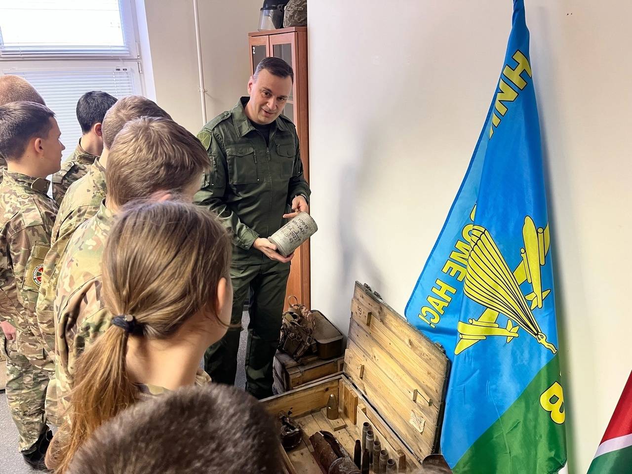 Кадеты школы №61 города Курска побывали в экспозиционном зале юнармейского отряда Курского государственного университета «Гвардия Отечества». Экскурсию для ребят устроил руководитель отряда, доцент КГУ, представитель РО РВИО в Курской области Арсений Рагунштейн.