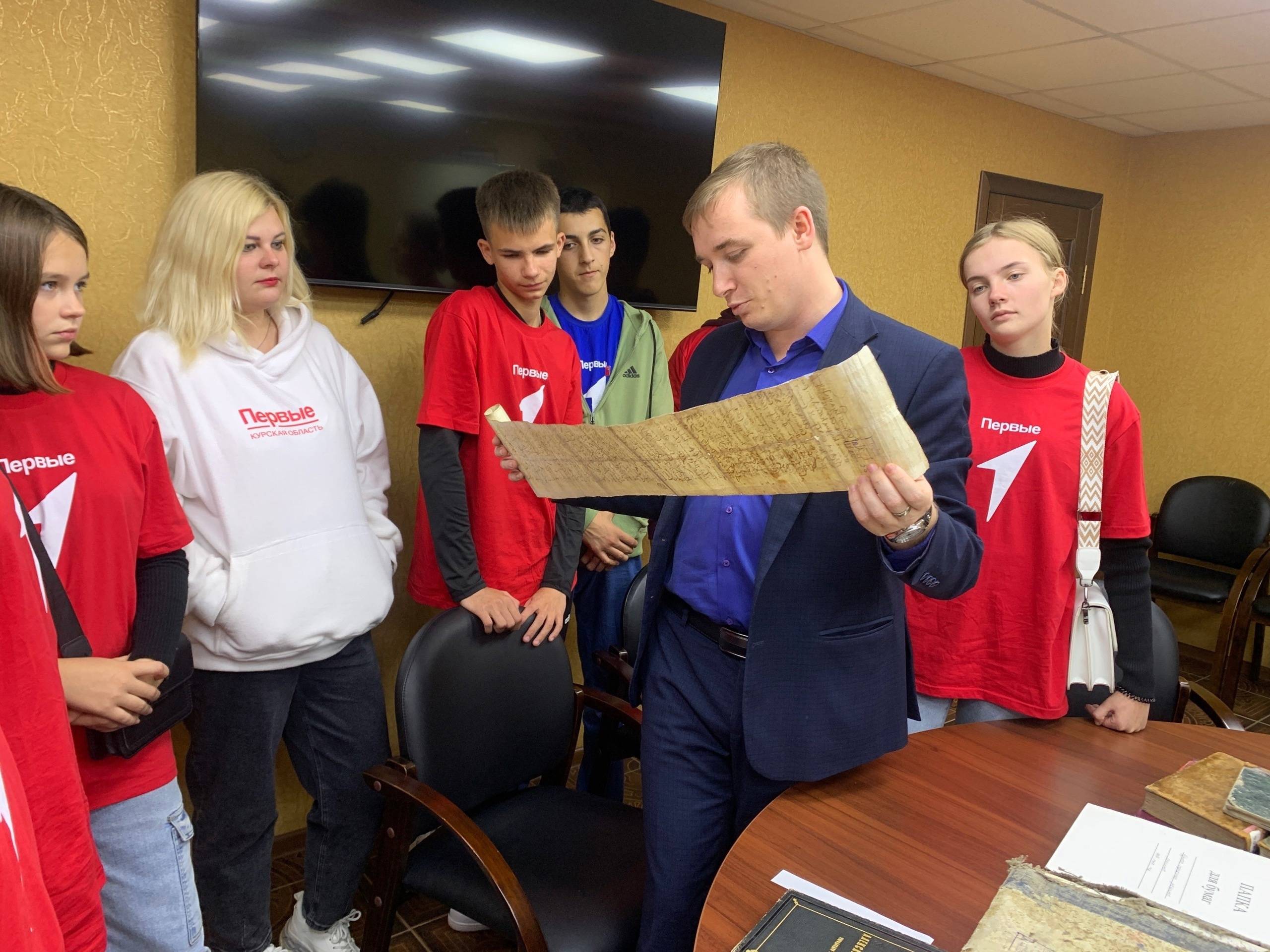 Государственный архив Курской области посетили активисты "Движения Первых" Курчатовского района. Для них провел экскурсию заместитель директора по научно-исследовательской работе Госархива, кандидат исторических наук О.Н. Аргунов.