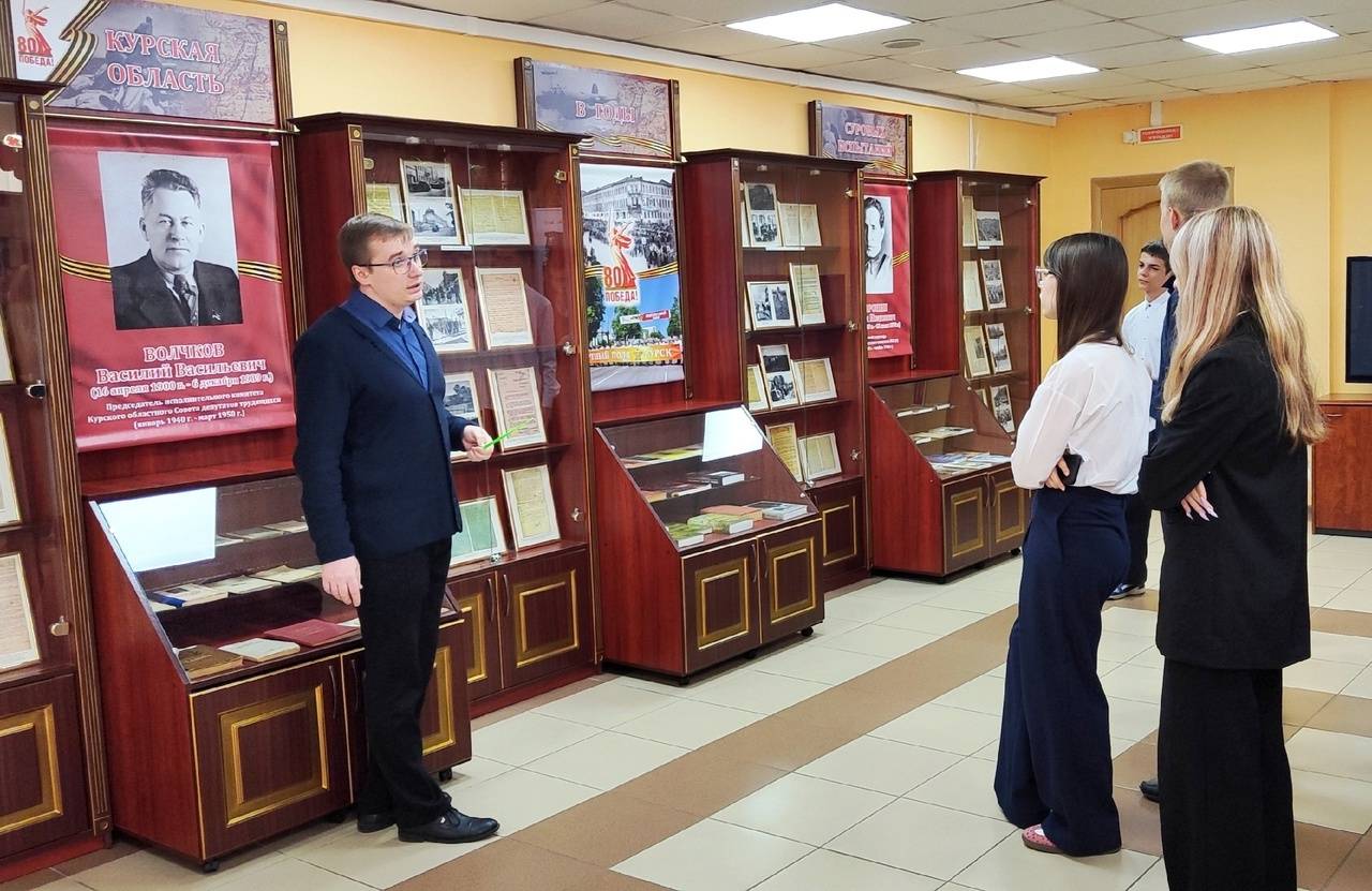 Олег Николаевич показал ребятам документы о начале мобилизации в Курской области, о формировании и функционировании истребительных и партизанских отрядов, об освобождении нашей земли от фашистов. Школьники увидели материалы, о зверствах немецко-фашистских захватчиков на территории Курской области, о подготовке к Курской битве и восстановлению мирной жизни на бывших оккупированных территориях. Они также узнали о праздновании Дня Победы в Курской области с 9 мая 1945 года по середину 1990-х годов.