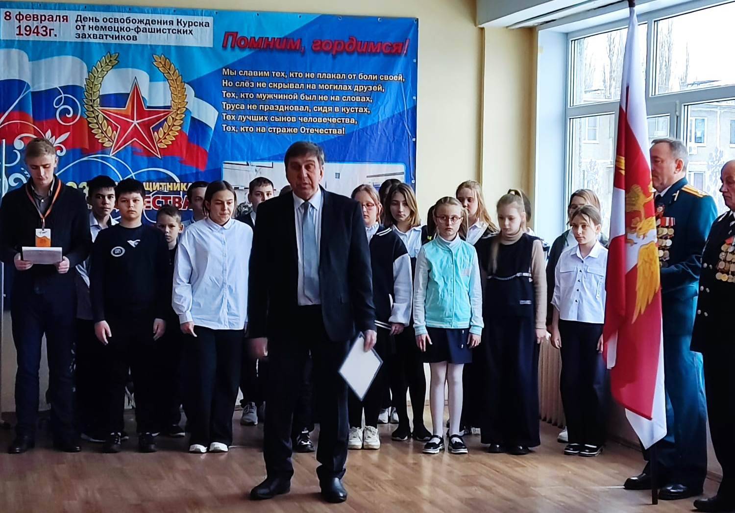 8 декабря 2022 года, в канун Дня героев Отечества, в школе № 20 имени Героя России А.А. Хмелевского состоялась торжественная церемония вручения копии флага внутренних войск МВД России школьному юнармейскому отряду. Решение о таком поощрении коллектива учебного заведения за большую работу по героико-патриотическому воспитанию молодежи, сохранению памяти о погибших выпускниках и пропаганде их подвигов, было принято Советом ветеранов органов внутренних дел Курской области. Представитель этой ветеранской организации, член РВИО, подполковник милиции в отставке В.П. Быканов выполнил почетную миссию.