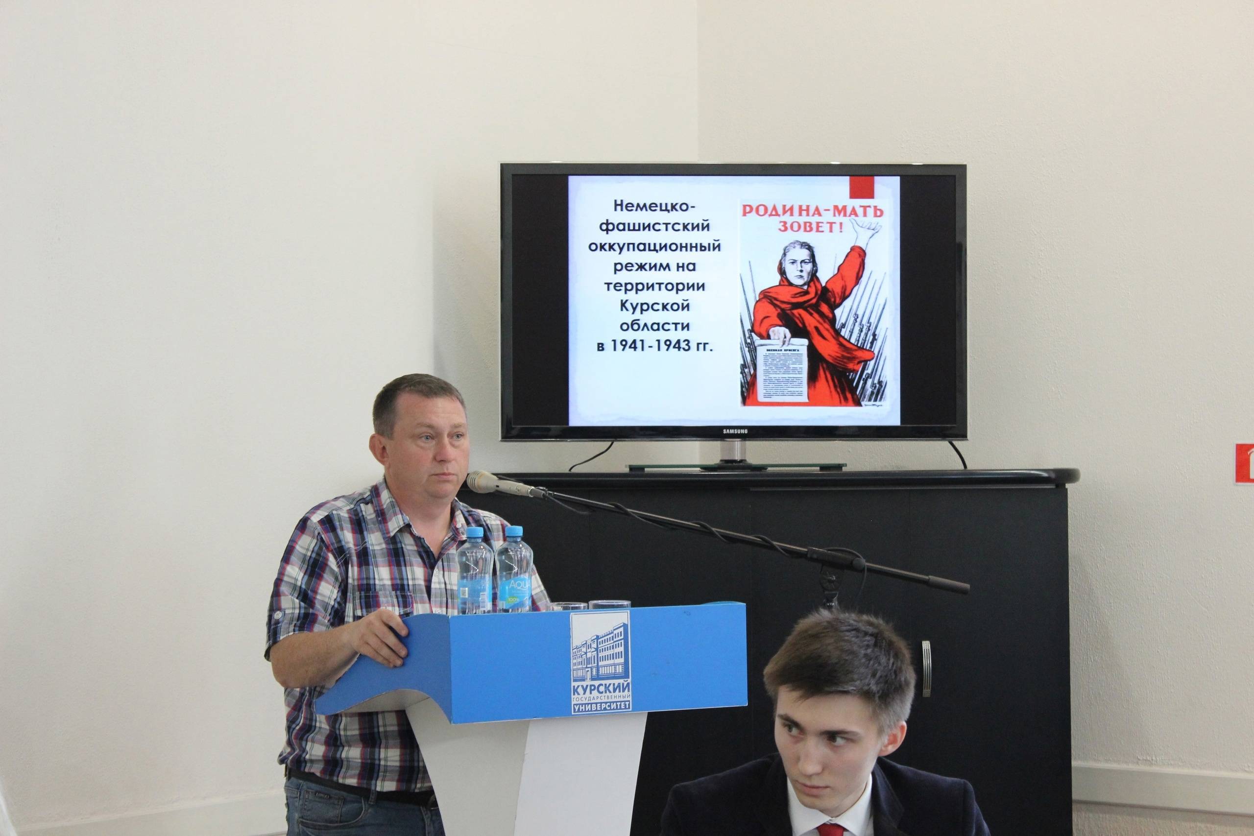 На мероприятии выступил член РО РВИО, автор книги «Немецко-фашистская оккупация и коллаборационизм на территории областей Центрального Черноземья в годы Великой Отечественной войны», доцент кафедры истории и социально-культурного сервиса ЮЗГУ Сергей Никифоров. Он охарактеризовал особенности немецко-фашистского режима на оккупированной территории Курской области.