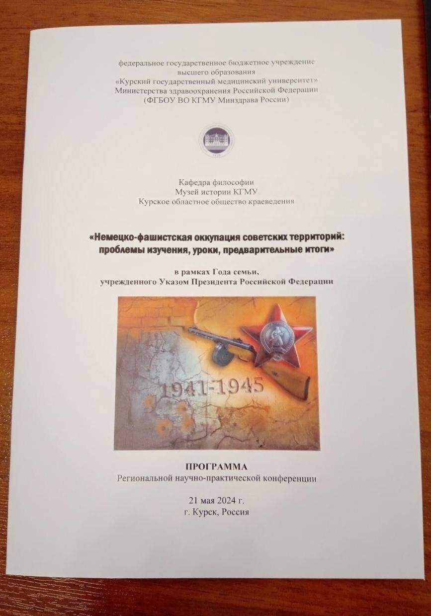 В Курском медуниверситете прошла Региональная научно-практическая конференция «Немецко-фашистская оккупация советских территорий: проблемы изучения, уроки, предварительные итоги». На ней прозвучало более 60 докладов от преподавателей университетов, архивных и музейных работников, студентов.