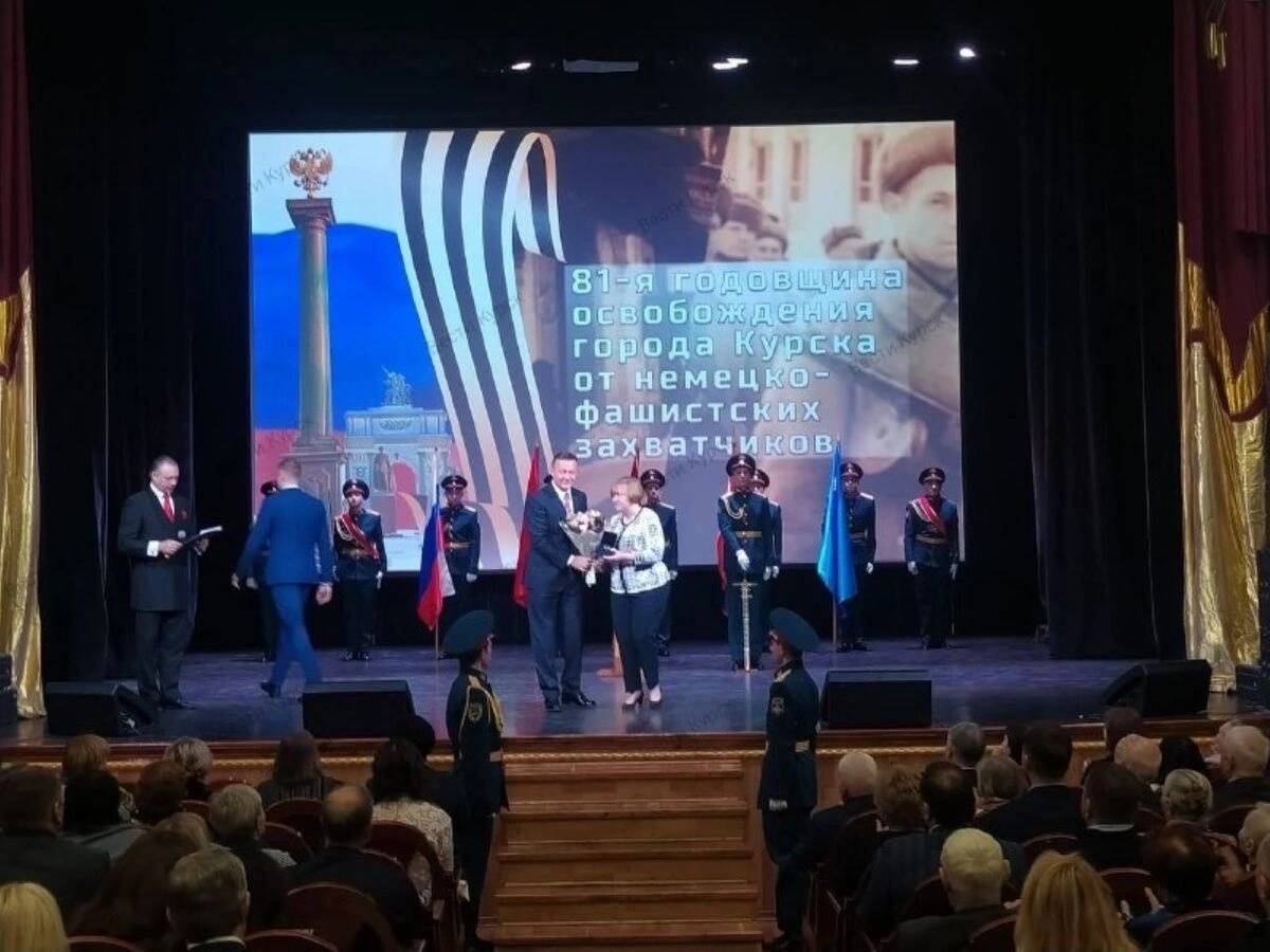 Сегодня на торжественном собрании, посвященном 81-й годовщине освобождения города Курска от немецко-фашистских захватчиков, члены регионального отделения РВИО были отмечены за большой вклад в сохранение исторической памяти и патриотическое воспитание подрастающего поколения. Губернатор Курской области Роман Старовойт наградил ценным подарком директора Центра историко-культурного наследия города Курска Наталью Астапову. Наград Главы города Курска и областной Думы были удостоены председатель городского Совета ветеранов Иван Малков и руководитель поискового отряда «Курган» Алексей Сотников.