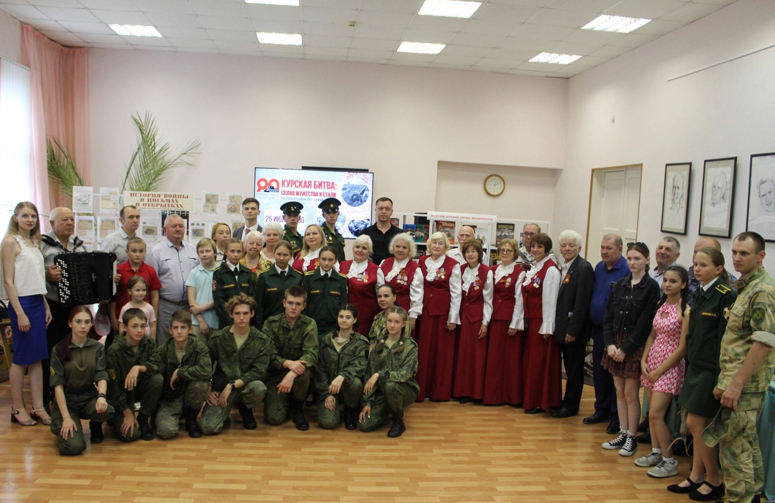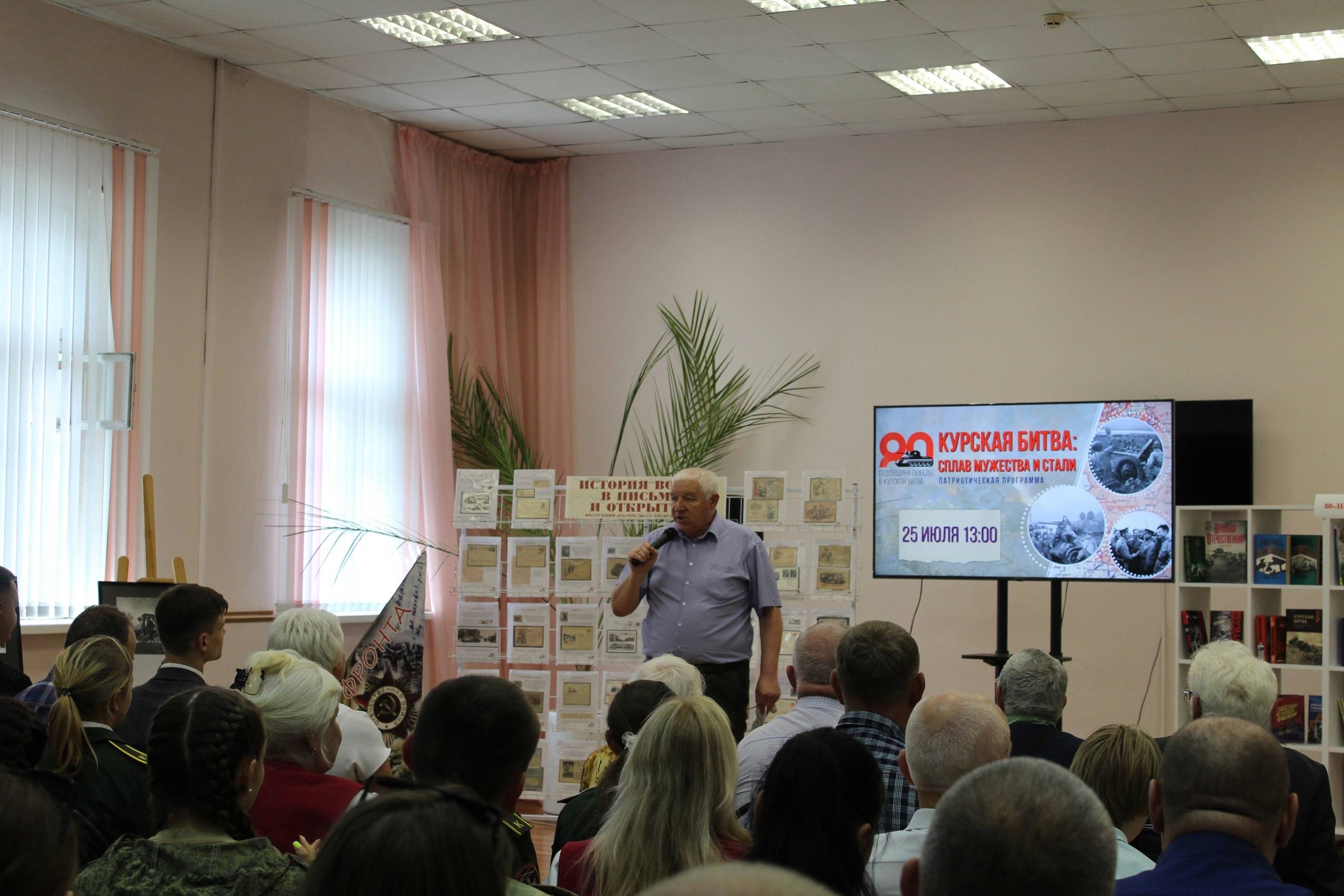 25 июля в Центральной городской библиотеке имени Семенова провели патриотическую программу «Курская битва: сплав мужества и стали». Ее гостями стали члены РО РВИО в Курской области: председатель Совета ветеранов Железнодорожного округа г. Курска Александр Манжосов и председатель Совета ветеранов войны, труда и правоохранительных органов Центрального округа г. Курска Александр Горяинов.