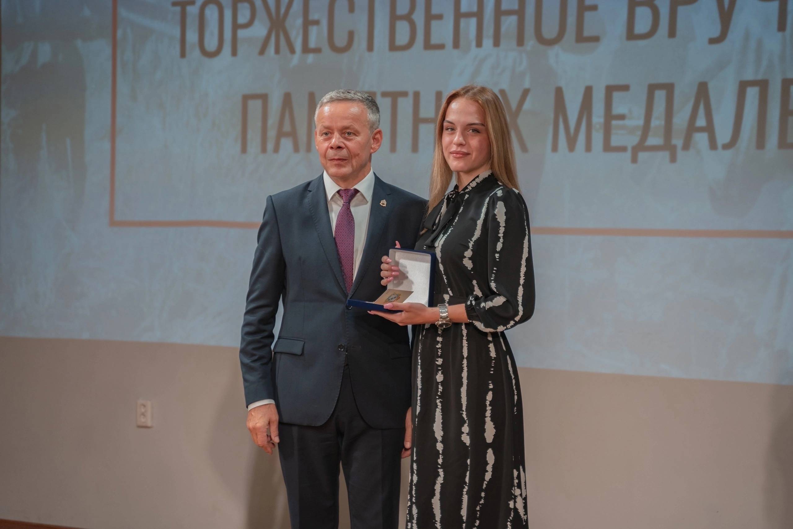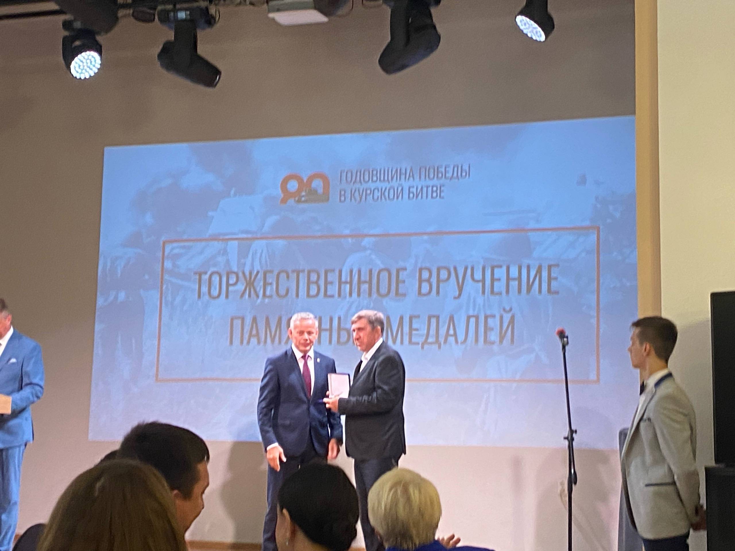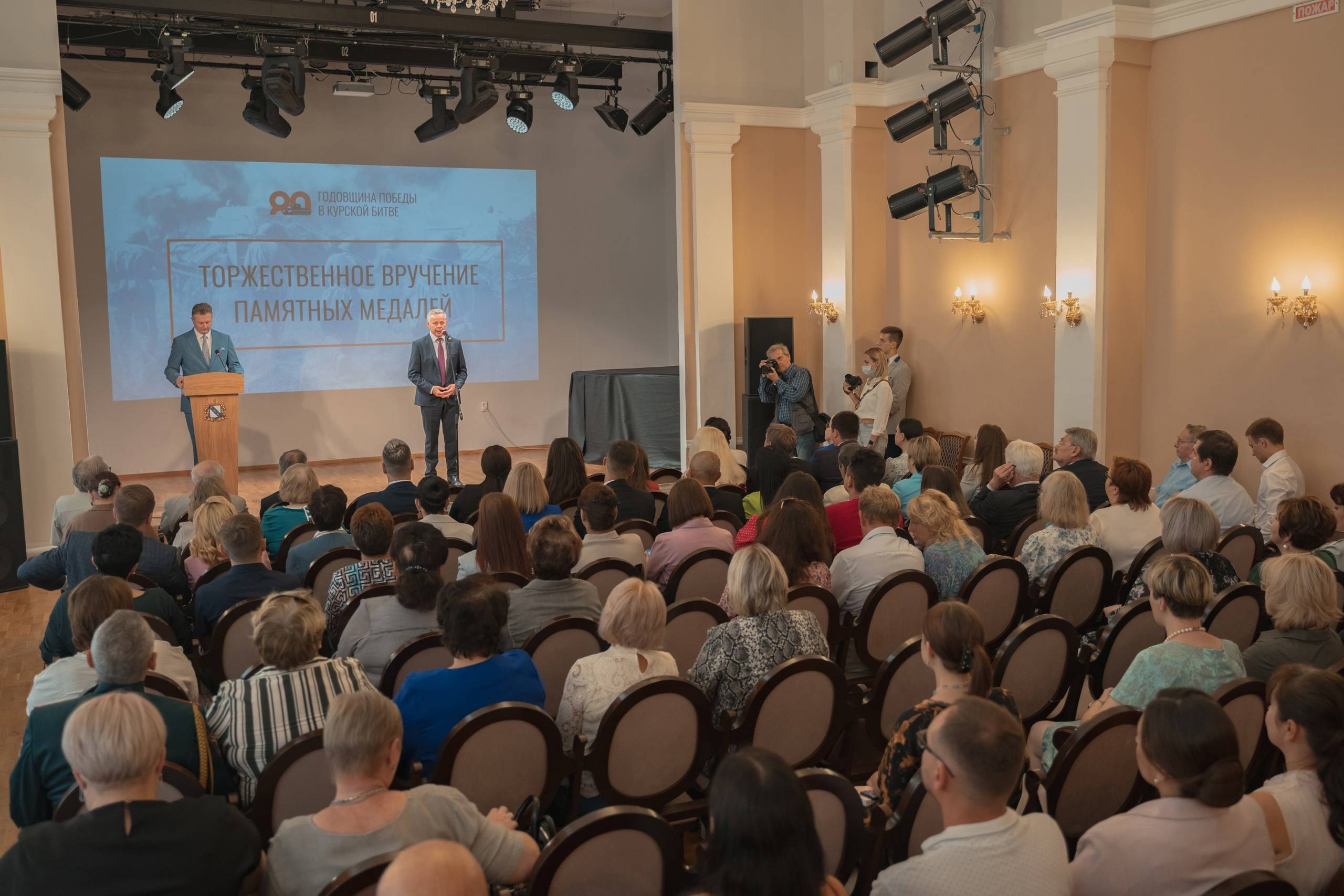 Сегодня в концертном зале «Свиридовский» состоялось торжественное награждение памятными медалями в честь 80-летия Победы в Курской битве. Почетные награды вручал заместитель губернатора Курской области В.Н. Карамышев.
