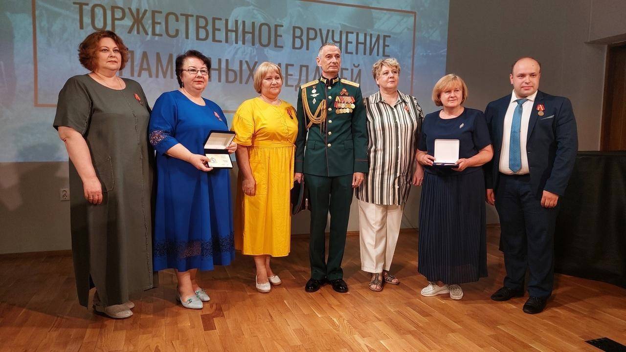 Памятных медалей удостоены члены регионального отделения Российского военно-исторического общества: профессор ЮЗГУ, председатель Совета РО РВИО в Курской области В.В. Коровин, военный историк, ведущий научный сотрудник кафедры теории и истории государства и права ЮЗГУ В.Н. Замулин, руководитель студенческого конструкторского бюро «Инженерно-космическая школа» ЮЗГУ В.А. Пиккиев, директор музея ЮЗГУ Е.А. Головин, активисты студенческого патриотического клуба «Порубежник» ЮЗГУ Д.А. Ирмакова , С.А. Душкин, Е.А. Лоторева, Д.С. Макаев и П.С. Потапенко, руководитель музея Боевой Славы 75-й гвардейской стрелковой дивизии школы №1 города Курска О.В. Якунин, заведующая военно-историческим музеем «Юные защитники Родины » Л.С. Холтобина, методист Дома детского творчества Железнодорожного округа г. Курска Л.Г. Веретенникова, руководители Центра историко-культурного наследия города Курска Н.А. Астапова, Н.В. Афанасьева, С.А. Лукина, Н.Н. Сердюков, педагог-организатор Курского Дворца пионеров и школьников, подполковник милиции в отставке В.П. Быканов, директор Курского областного краеведческого музея Олег Пушкарев, директор Курского областного драматического театра Сергей Конев, директор Курской областной универсальной научной библиотеки Наталия Шишкова, исполнительный директор регионального отделения РВИО Кирилл Мартынов, научный сотрудник Поныровского военно-мемориального музея Александр Палилов.