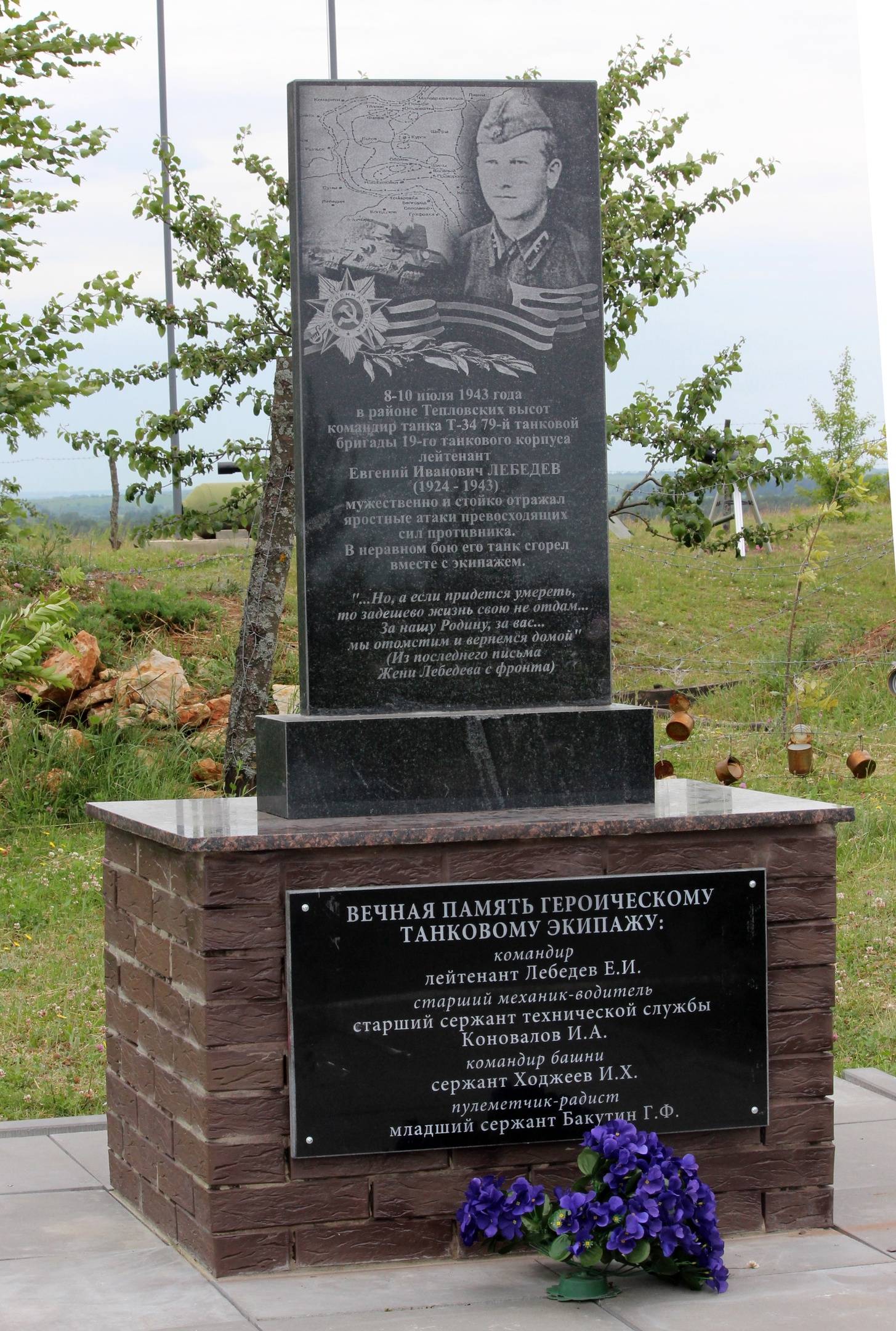 15 июня члены РО РВИО в Курской области и студенты юридического факультета ЮЗГУ установили мемориальную доску героическому танковому экипажу лейтенанта Евгения Ивановича Лебедева. 8 и 10 июля 1943 года в боях на Тепловских высотах экипаж уничтожил 2 танка и до 40 военнослужащих противника. В неравном бою танк сгорел, а члены экипажа пали смертью храбрых. На граните высечены фамилии и инициалы отважных воинов: командира Лебедева, старшего механика-водителя А.И. Коновалова, командира башни И.Х. Ходжеева, пулеметчика-радиста Г.Ф. Бакутина. Имена всех героев удалось определить совсем недавно благодаря труду ученых историков в архивах.