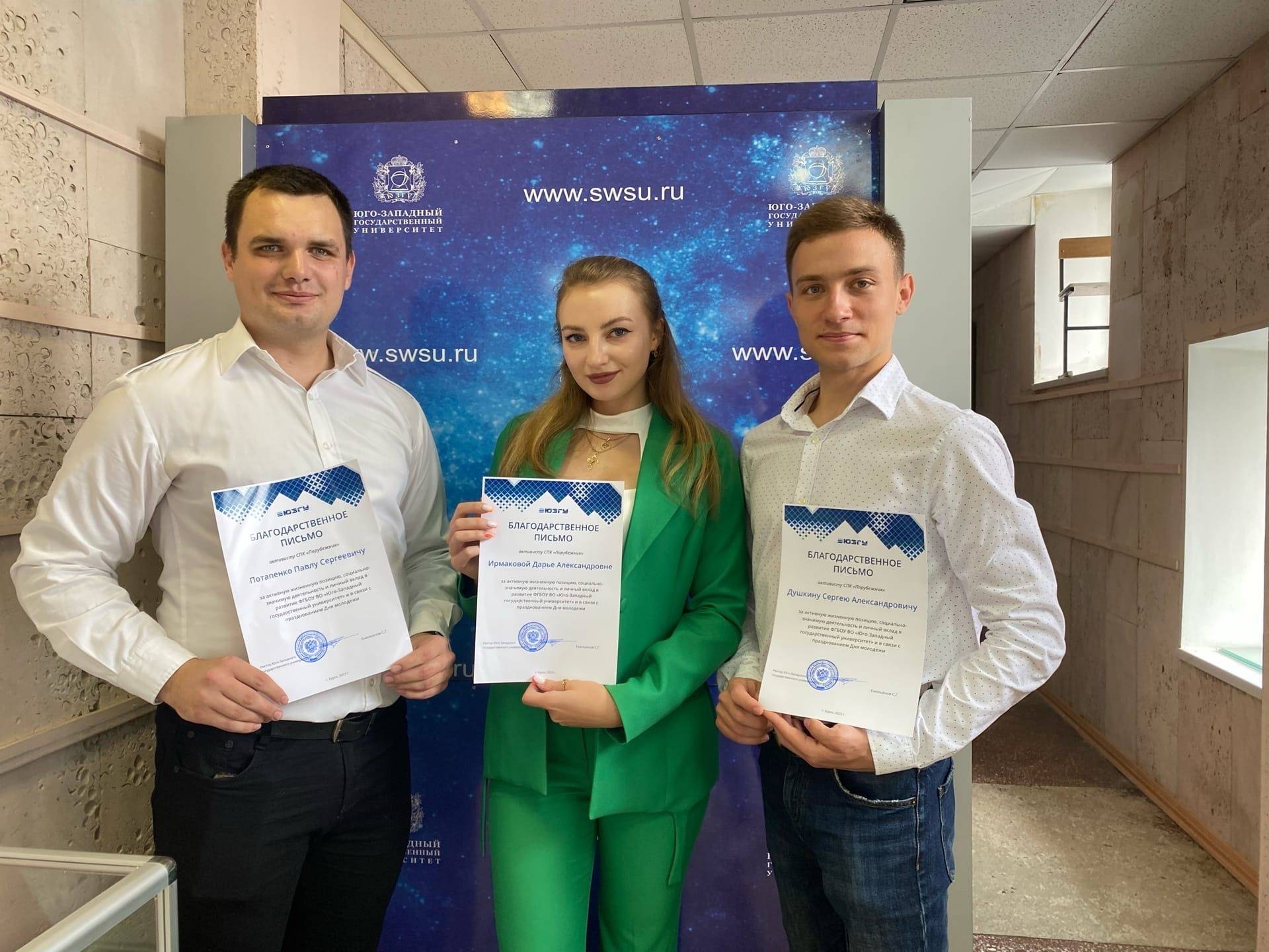 30 июня на заседании Ученого совета ЮЗГУ ректор С.Г. Емельянов вручил благодарственные письма за активную жизненную позицию, социально-значимую деятельность и личный вклад в развитие ФГБОУ ВО «Юго-Западный государственный университет» и в связи с празднованием Дня молодежи активистам Студенческого патриотического клуба «Порубежник»,членам РО РВИО в Курской области С.А. Душкину, Д.А. Ирмаковой, П.С. Потапенко.