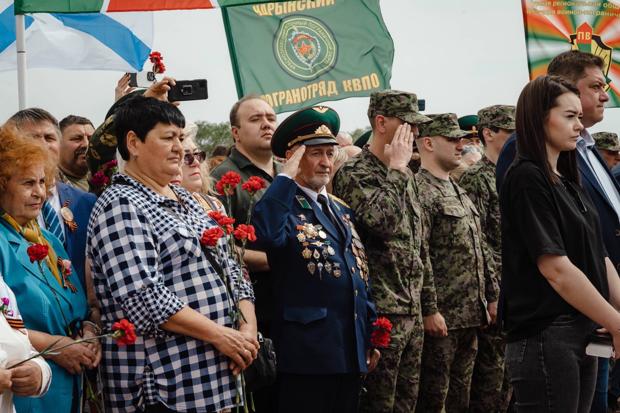 На открытии мемориала собралось много жителей, пограничников из разных районов области и соседних регионов. Многие несли в руках портреты Героев. Александр Евсеевич поздравил с праздником действующих бойцов и ветеранов службы. Мероприятие посетил председатель регионального отделения РВИО в Курской области, генеральный директор Курского областного краеведческого музея Олег Пушкарев.
