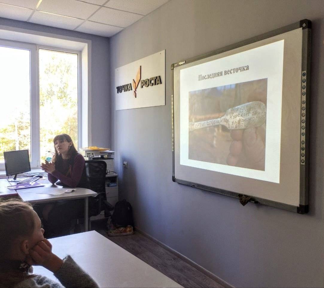 Председатель Железногорского местного отделения РВИО, старший научный сотрудник музея партизанской славы «Большой дуб» Анастасия Мальцева провела «Разговор о важном». Внеурочное занятие состоялось в Рышковской школе Железногорского района Курской области. Анастасия Ивановна рассказала ребятам о деятельности поисковых отрядов, о том, как устанавливают имена погибших воинов, а также познакомила школьников с информационными ресурсами о Великой Отечественной войне.