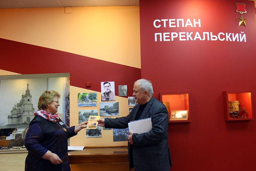 На следующий день участники поездки посетили село Осино-Гай и музей «Земля Героев», посвященный памяти трех уроженцев этого населенного пункта – Героев Советского Союза Зои и Александра Космодемьянских, командира 322-й стрелковой дивизии Степана Николаевича Перекальского. Музей, созданный энтузиастами на базе местной школы, был реконструирован РВИО, получив современную экспозицию, которая не оставляет равнодушными посетителей. Кроме рассказа о судьбе Зои и Шуры Космодемьянских, участники поездки узнали о детстве одного из самых известных освободителей города Курска С.Н. Перекальского. В дар музею были переданы копии личных документов и фотографий Степана Николаевича, а также контейнер с землей, взятой с могилы Героя на мемориале Павших в Курске.